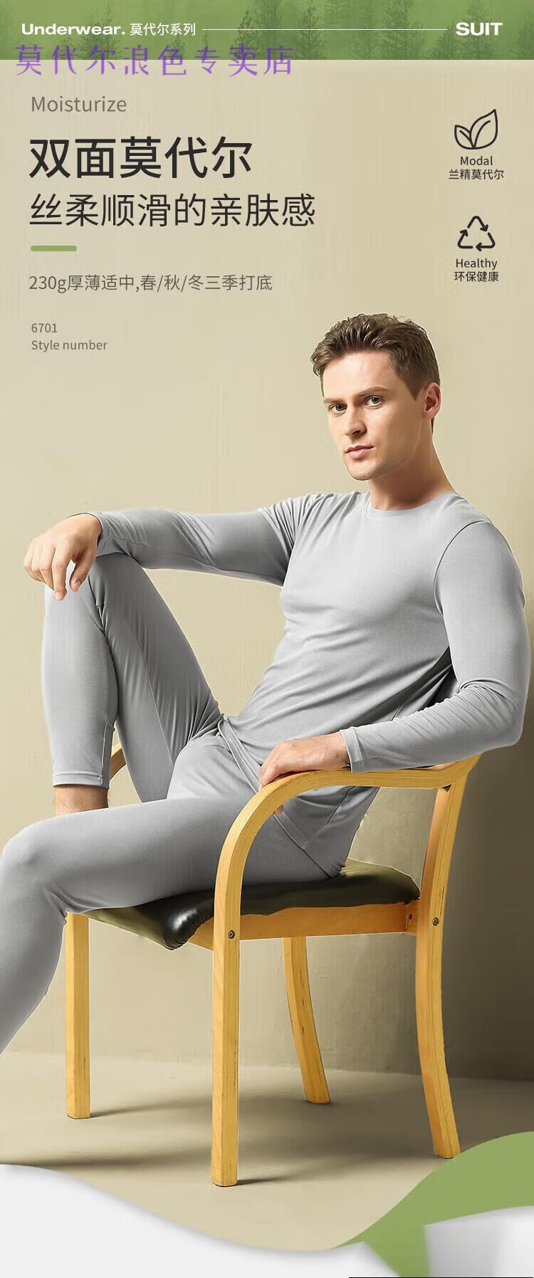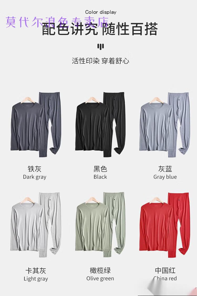 Modal High Quality Double-Sided Modal Autumn Clothes and Autumn Pants Set Men's Thermal Underwear Thin Slim Round Neck Bottoming Shirt Olive Green 2XL (140%7E160Jin Jin equals 0.5 kg)