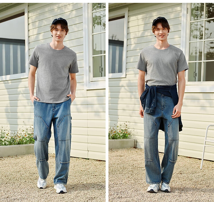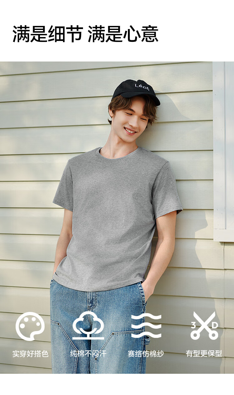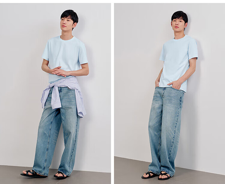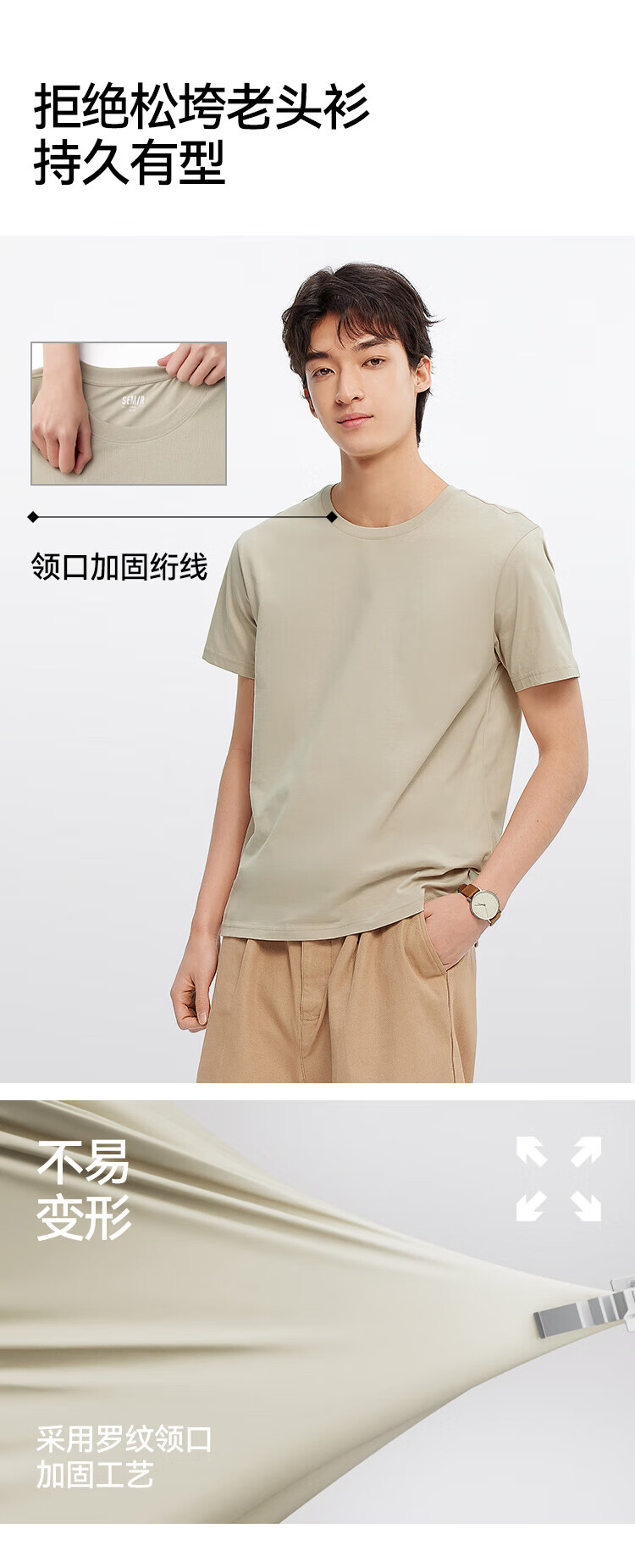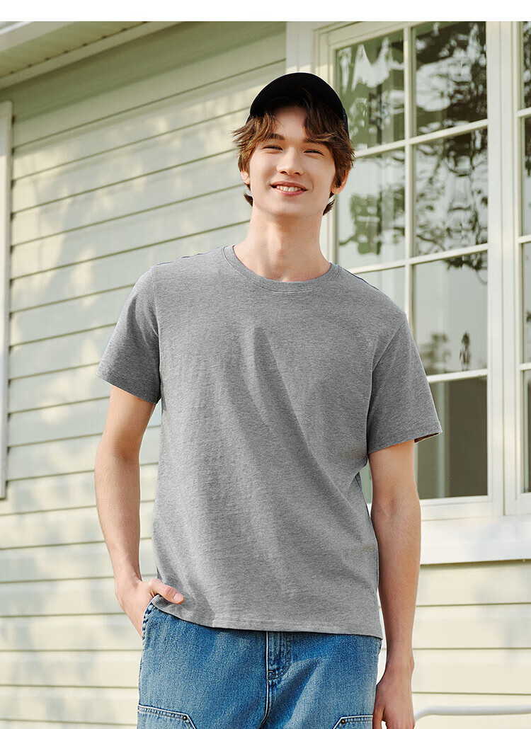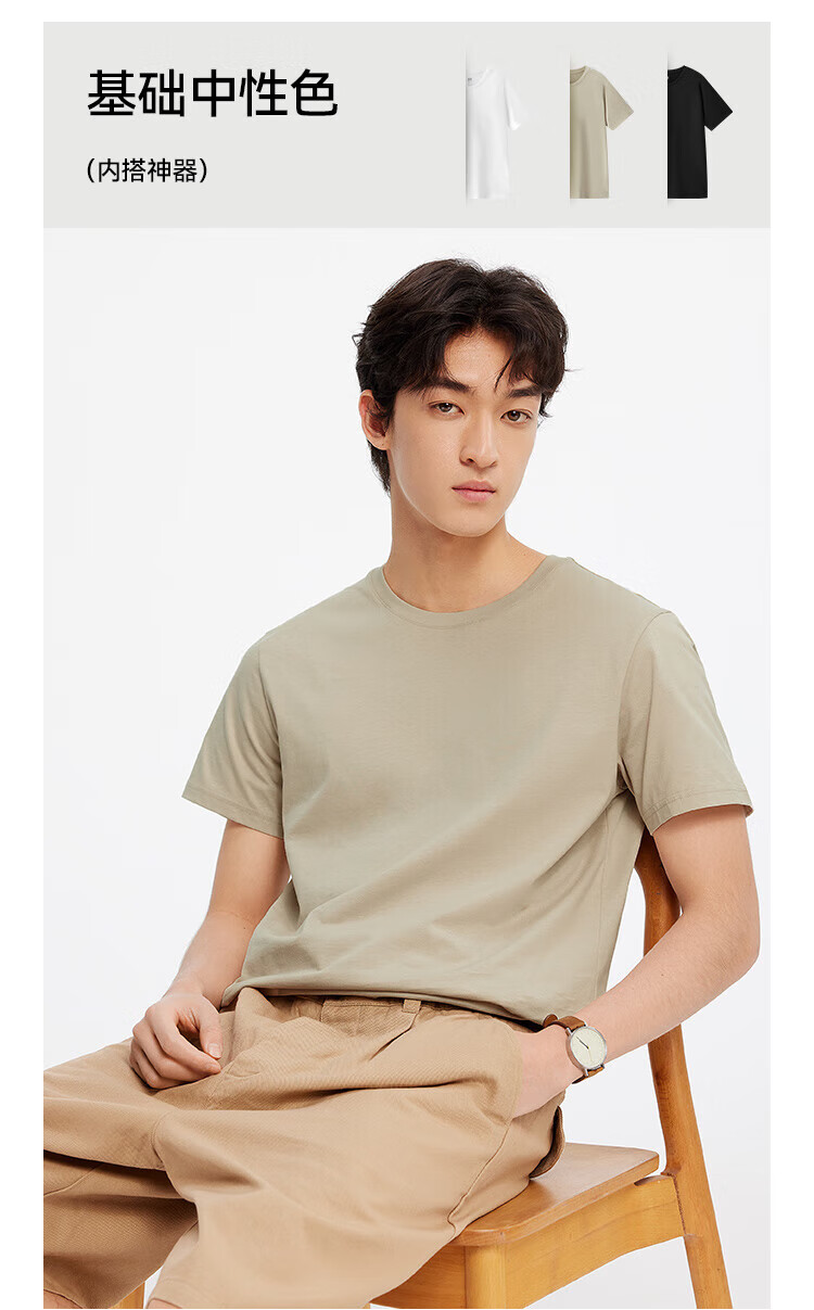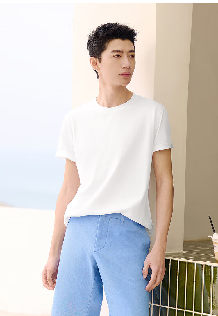 Semir short-sleeved T-shirt men's solid color bottoming shirt slim fit 25 summer new inner top simple versatile t-shirt for men shop TOP1 pure cotton style bleached 10007 L