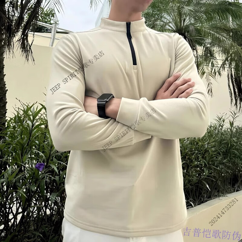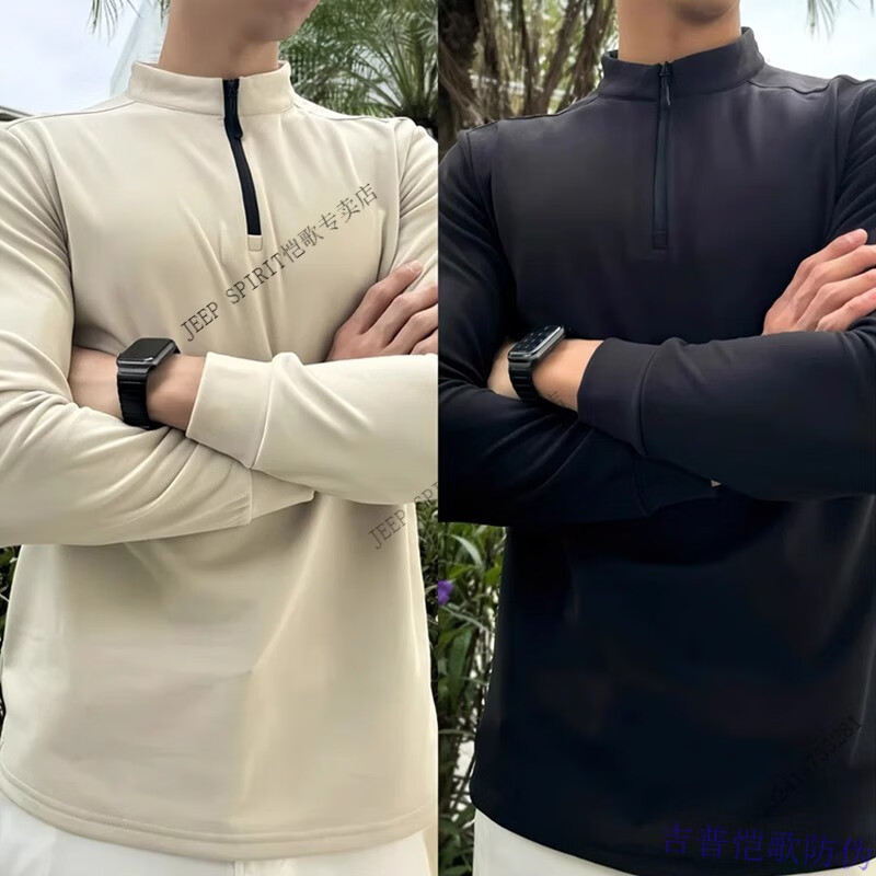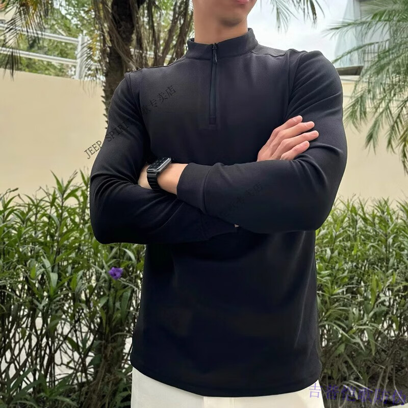 JEEP SPIRIT Men's German Velvet Bottoming Shirt Slim Fit Half-Zip Mid-High Collar T-Shirt Long Sleeve Black Inner Sports Sweatshirt New Product Black M (Suitable) 100-115Jin Jin is equal to 0.5 kg