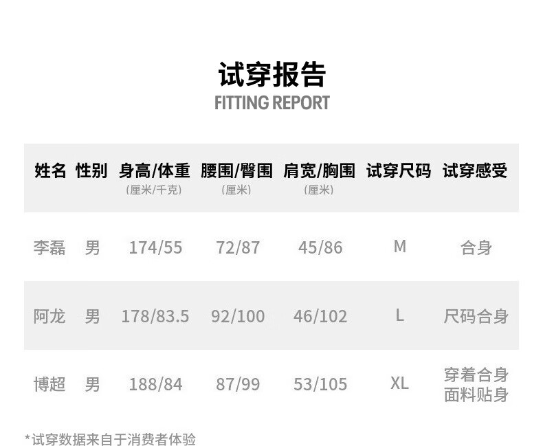 China (cm) 165 / 88-90 170 / 96-98 175 / 108-110 180 / 118-122 185 / 126-130