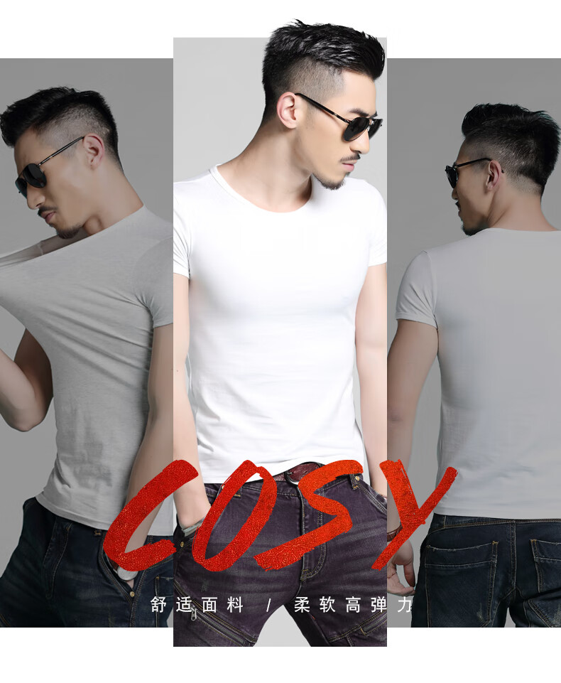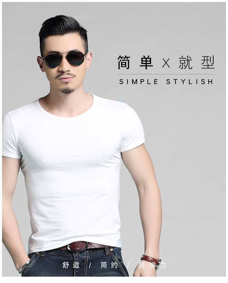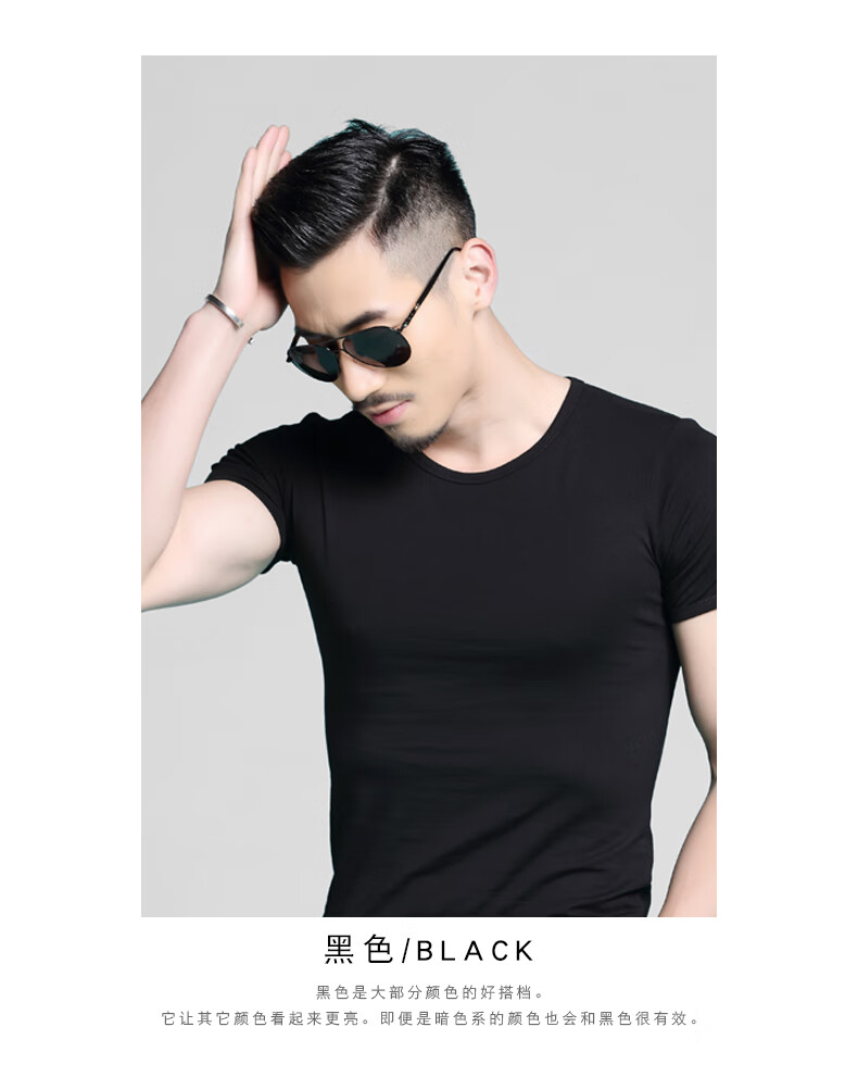 2 pieces of men's short-sleeved T-shirts slim fit summer half-sleeved black and white pure white tight-fitting bottoming shirt trendy brand QM round neck black + round neck army green XL 130-145Jin Jin equals 0.5 kg