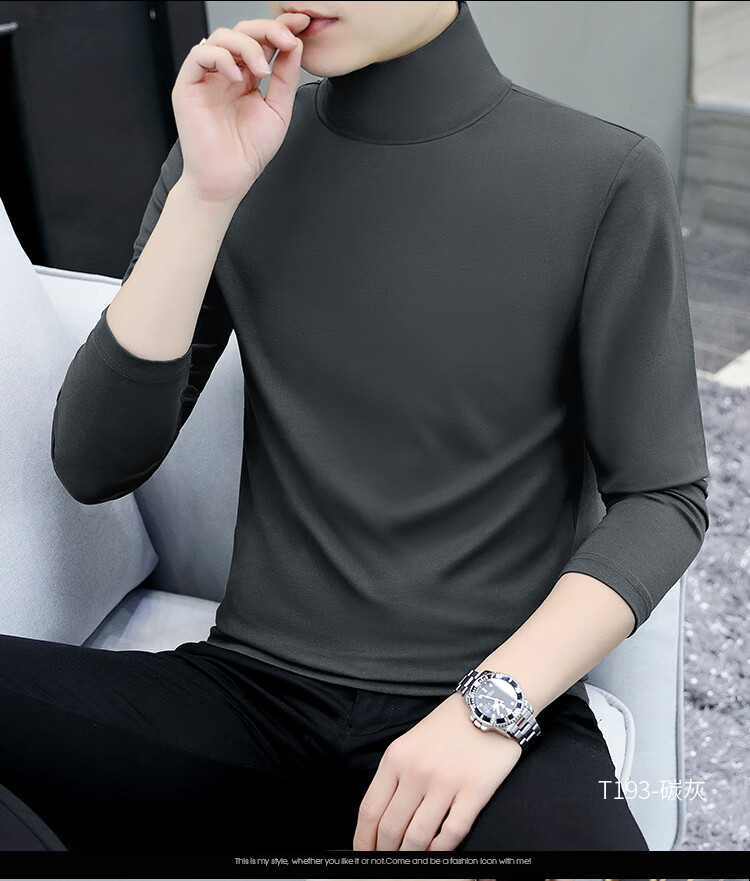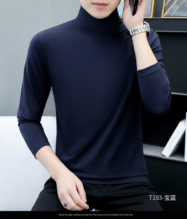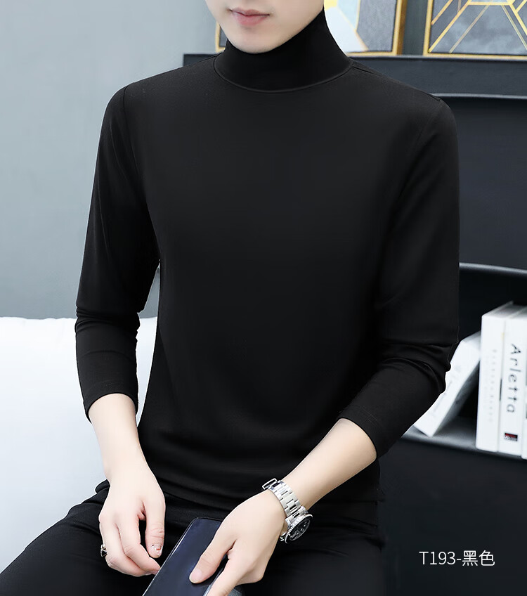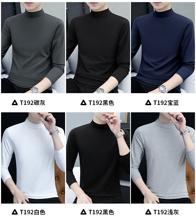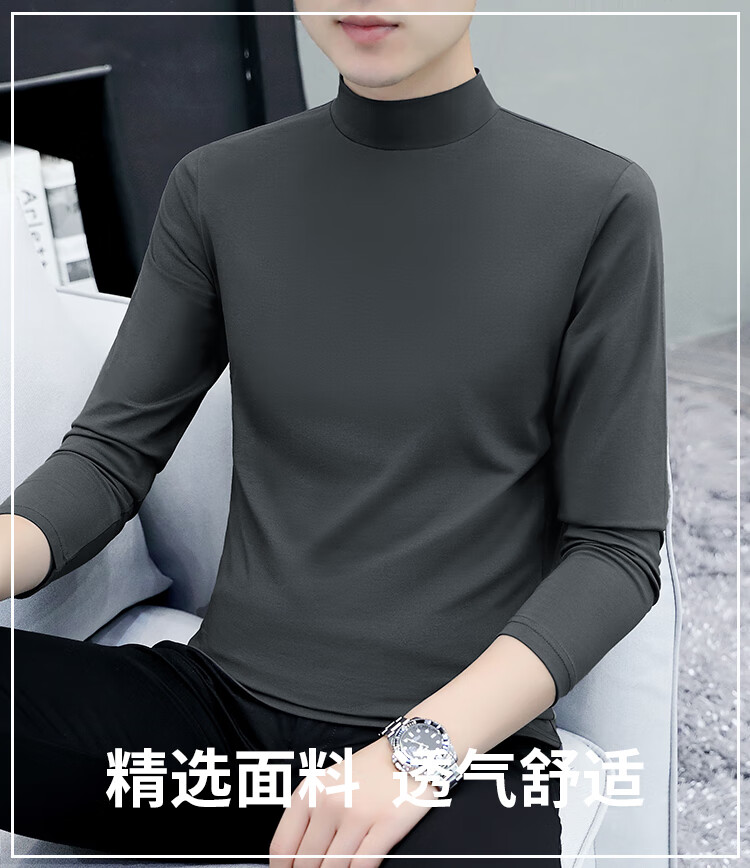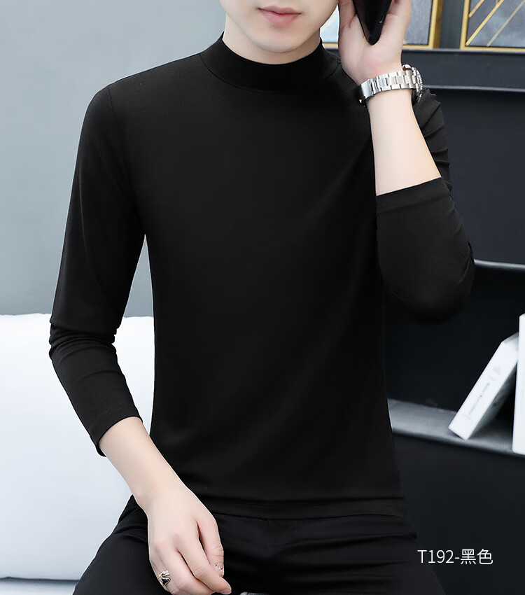 ROMON pure cotton autumn and winter half turtleneck bottoming shirt men's slim fit inner long-sleeved T-shirt mid-collar men's autumn coat outer wear YPT192 black half turtleneck 2XL recommended 145-160Jin Jin equals 0.5 kg