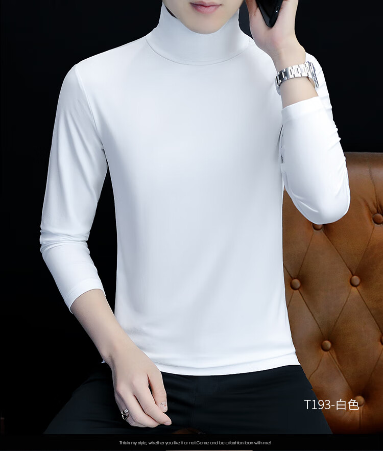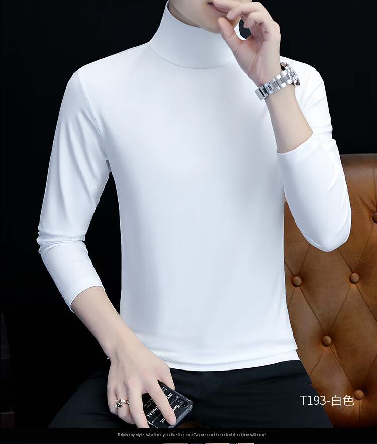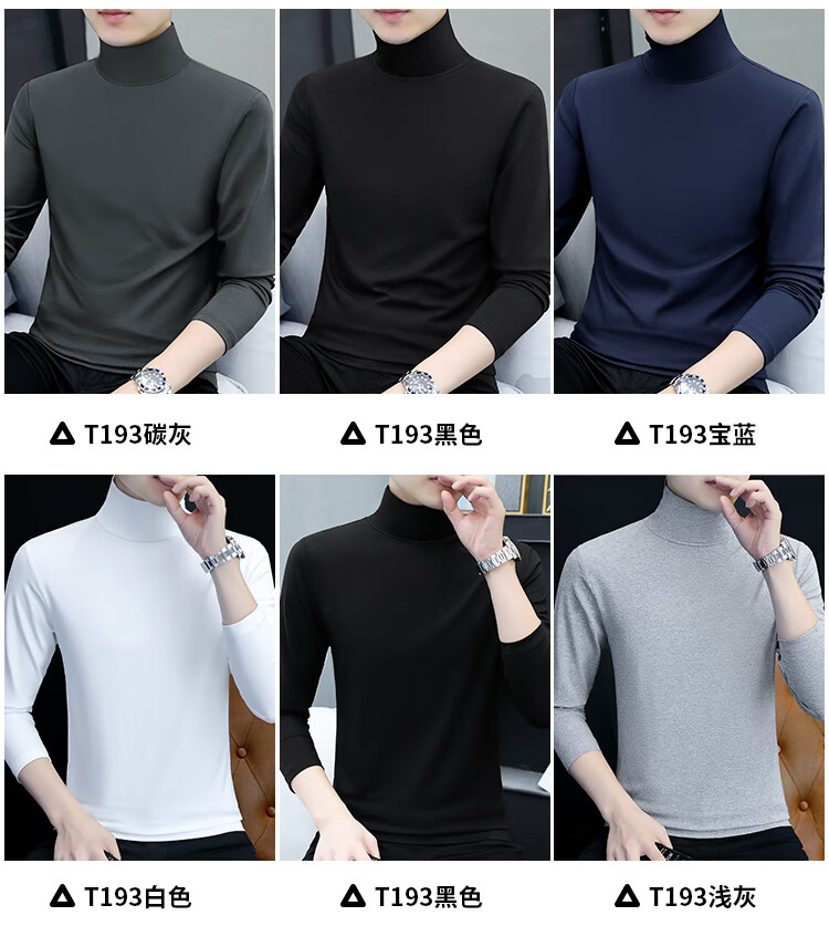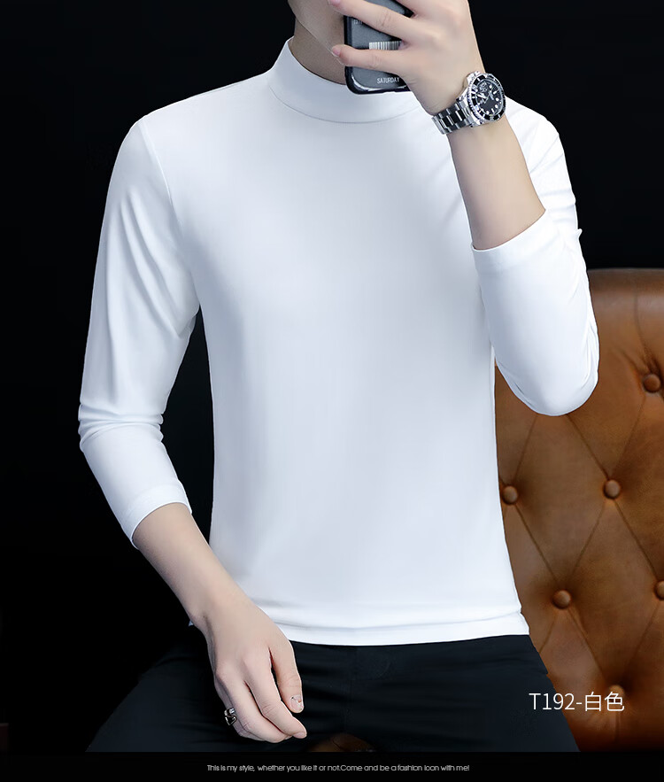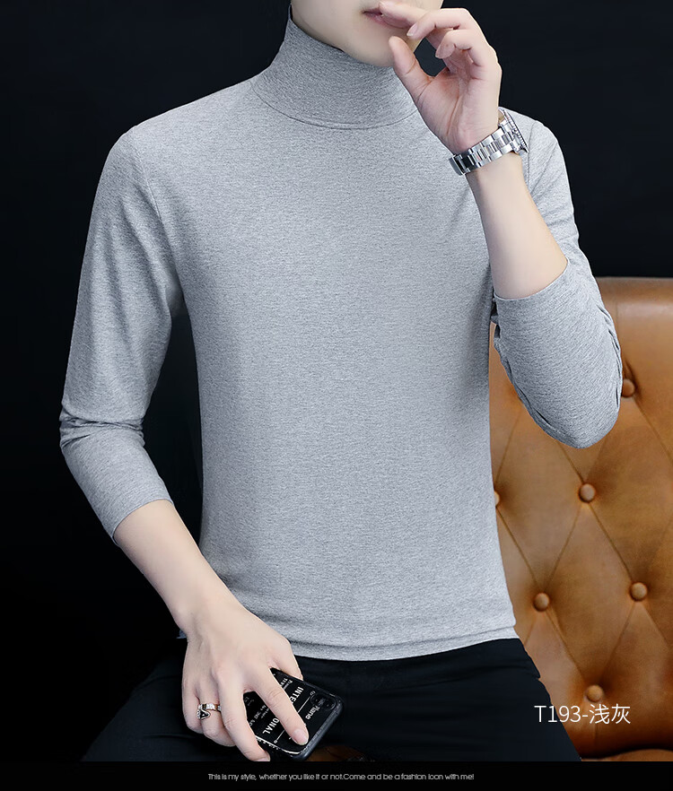 ROMON pure cotton autumn and winter half turtleneck bottoming shirt men's slim fit inner long-sleeved T-shirt mid-collar men's autumn coat outer wear YPT192 black half turtleneck 2XL recommended 145-160Jin Jin equals 0.5 kg