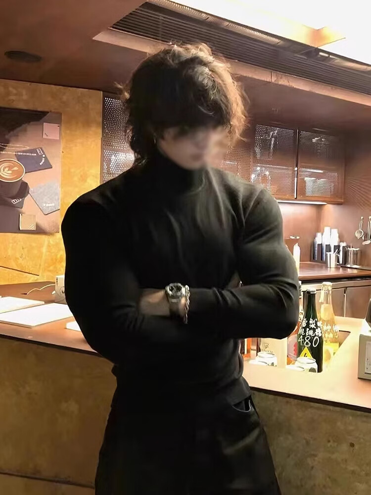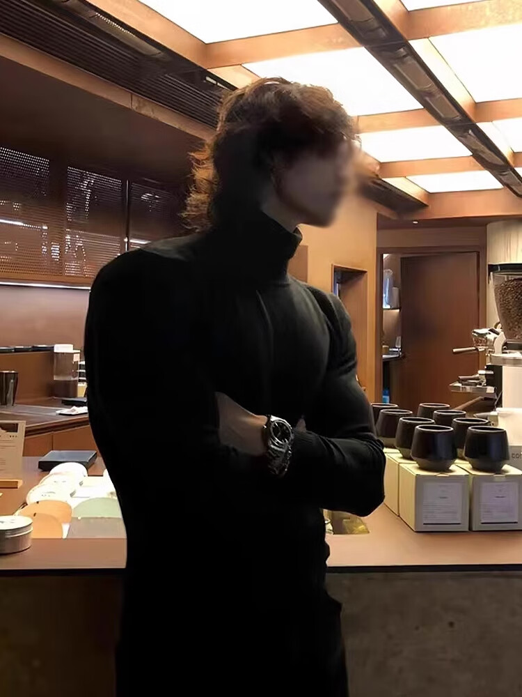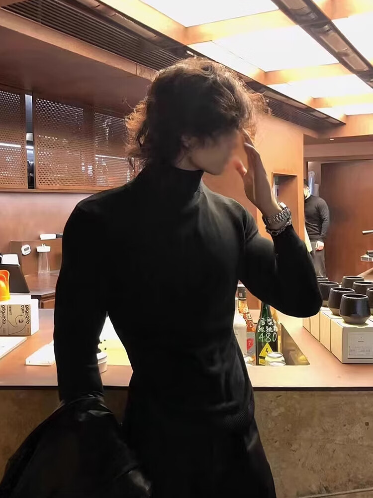 Kennedy black half turtleneck German velvet bottoming shirt men's mid-collar slim fit cleanfit long-sleeved T-shirt heavyweight inner sweatshirt black 3XL 167CM-175CM