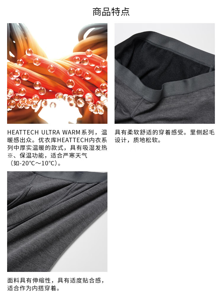 UNIQLO Men's HEATTECH ULTRA WARM Tights/Thermal Clothes Autumn Pants Underwear Autumn and Winter 479538 09 Black L