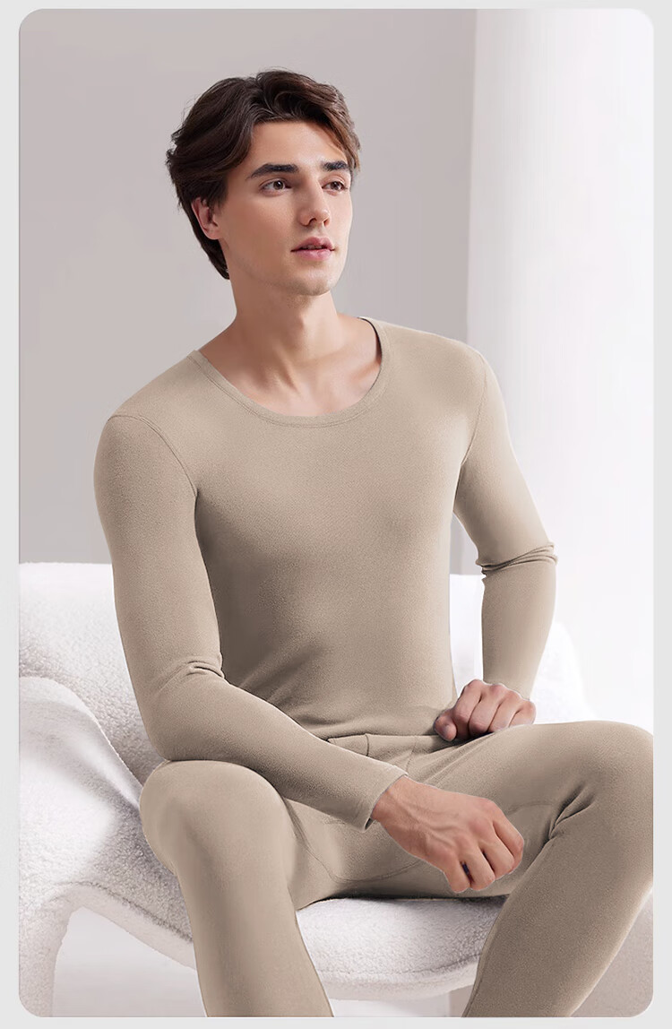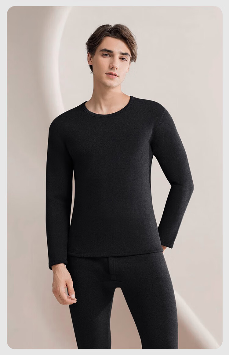 Urban Beauty Round Neck Thermal Underwear Men's Down Protein Slim Bottoming Shirt Autumn and Winter Autumn Clothes and Autumn Pants Set Men's Black XL