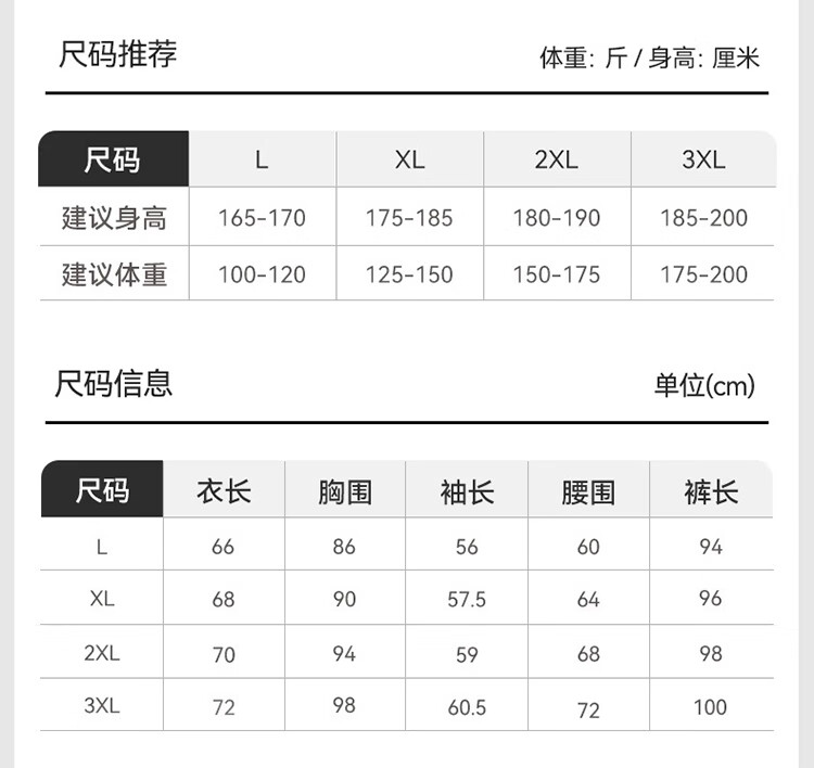 China (cm) 165 / 88-90 170 / 96-98 175 / 108-110 180 / 118-122 185 / 126-130