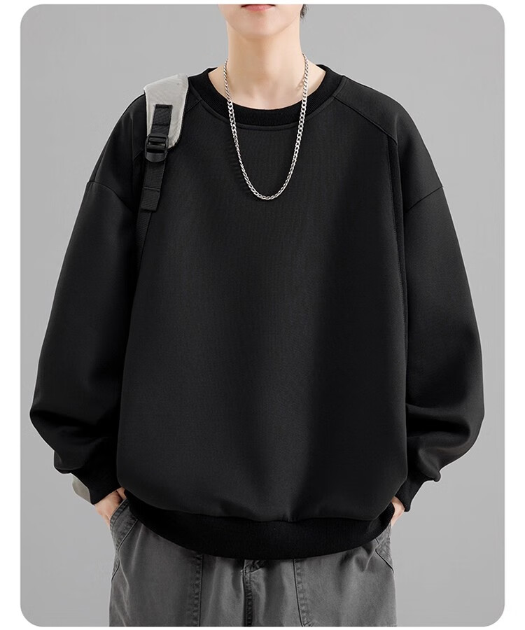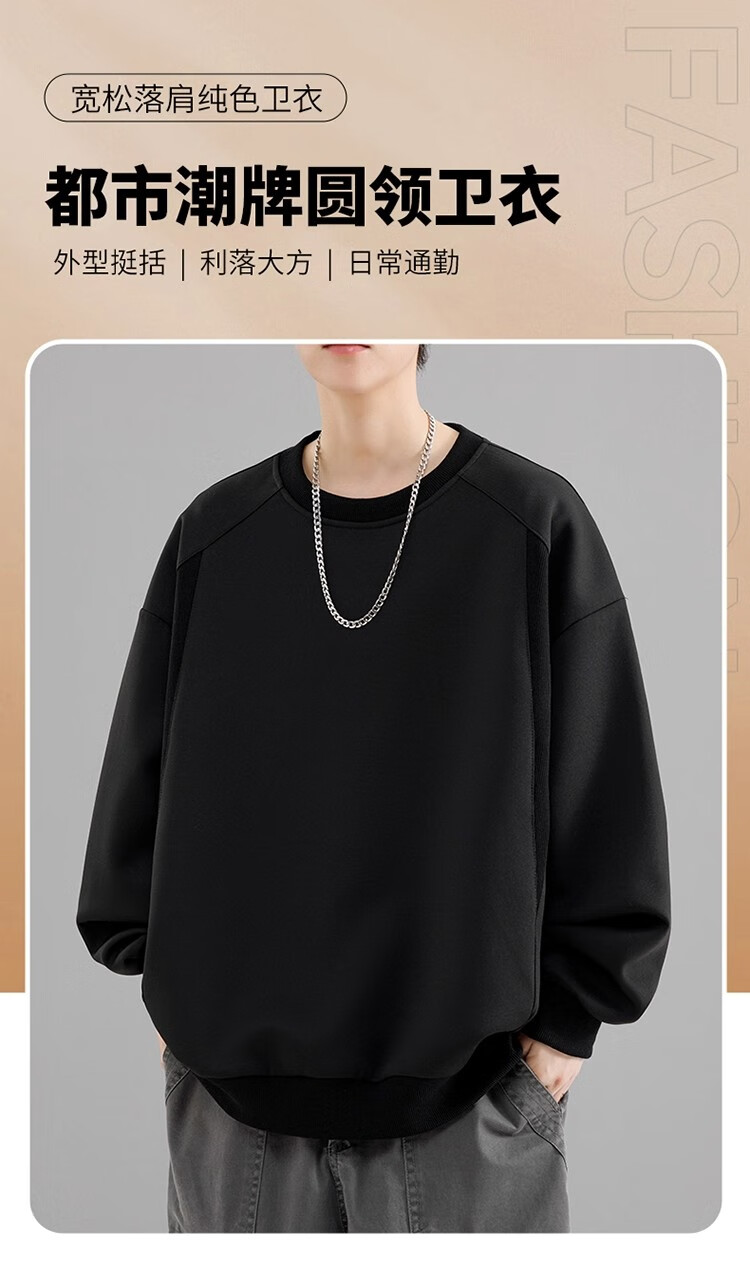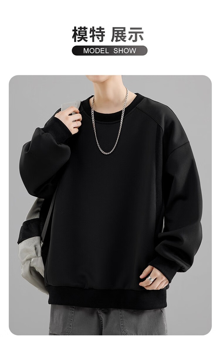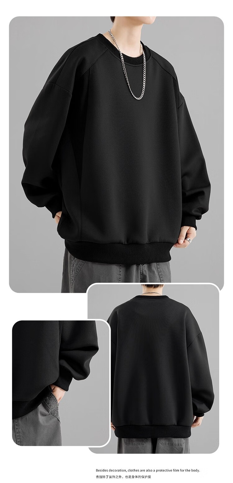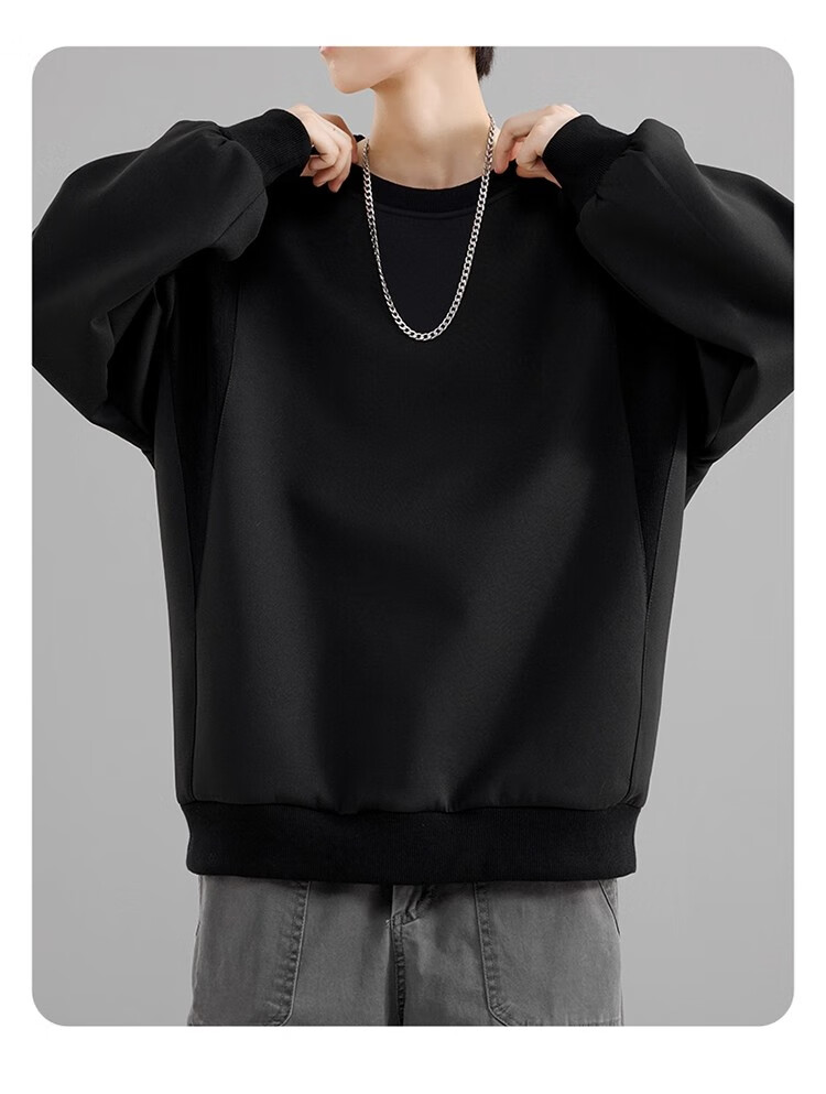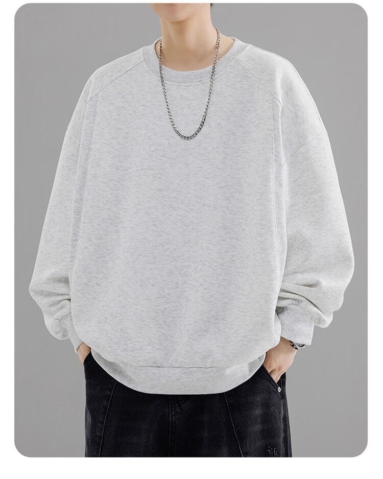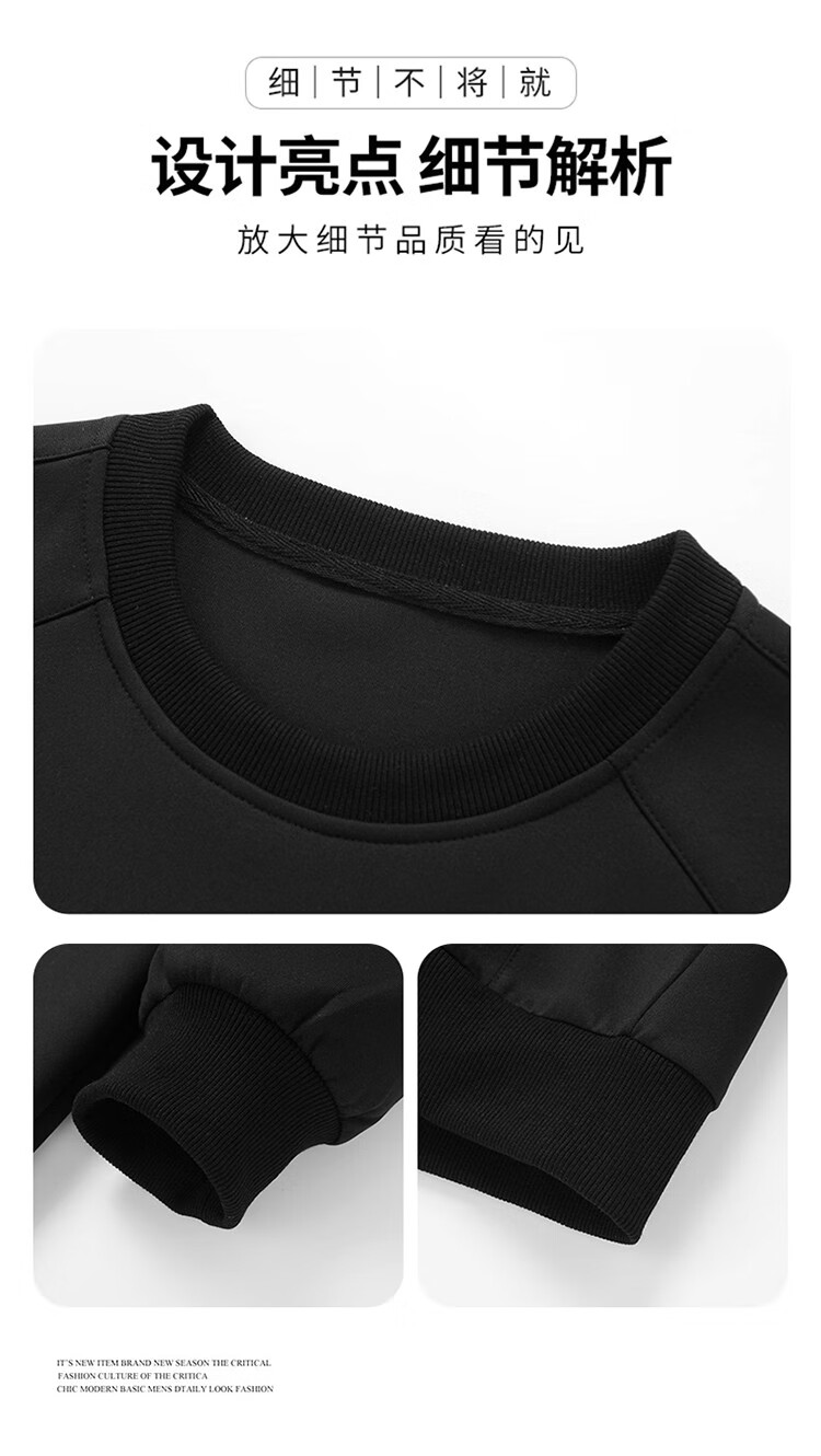 Round neck long-sleeved T-shirt for men 2025 autumn and winter trendy sweatshirt for men slim-fitting solid color inner layer warm plus velvet outer wear Iron Gray 2XL 125-140Jin Jin is equal to 0.5 kg