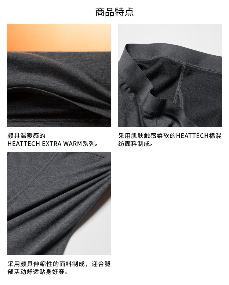 UNIQLO Men's HEATTECH EXTRA WARM Cotton Blended Tights/Thermal Underwear Autumn Pants 471525 471525/08 Dark Gray XL