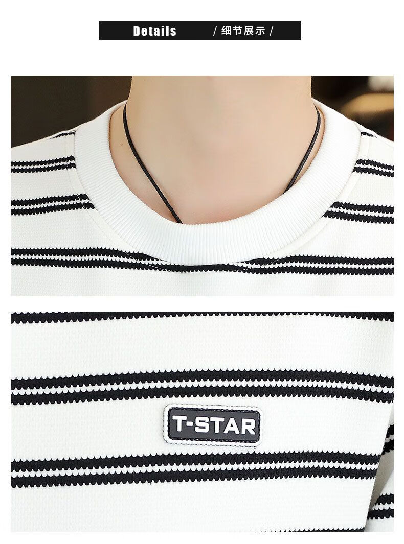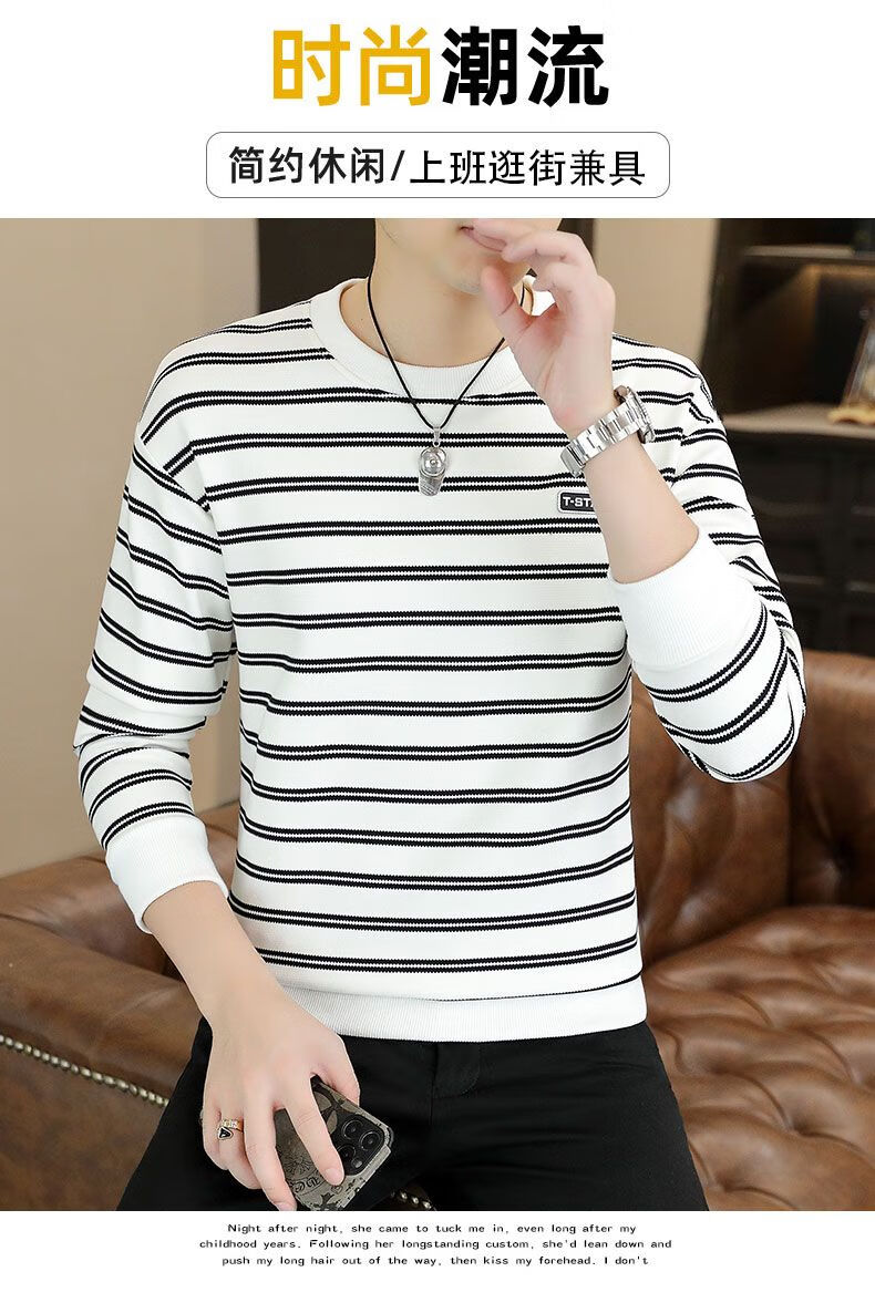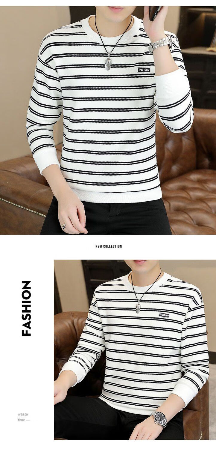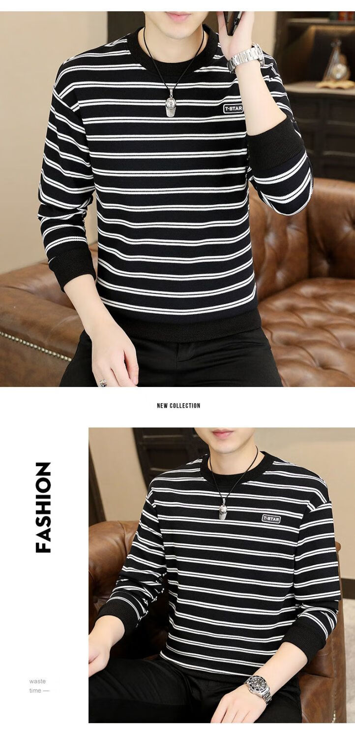 Playboy's new sweatshirt men's spring, autumn and winter round neck versatile slim fit plus velvet high-end striped men's long-sleeved T-shirt bottoming shirt 3376-black spring and autumn style XL recommended 130-145Jin Jin equals 0.5 kg