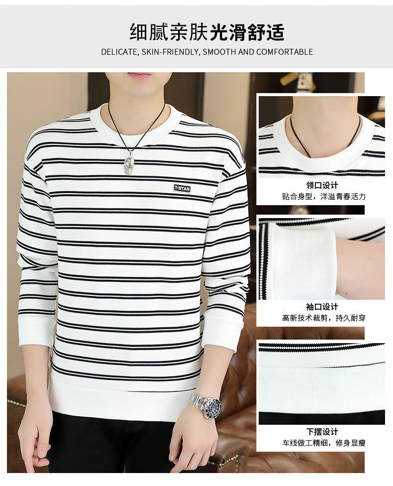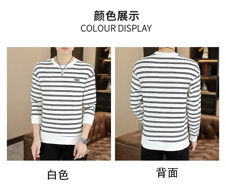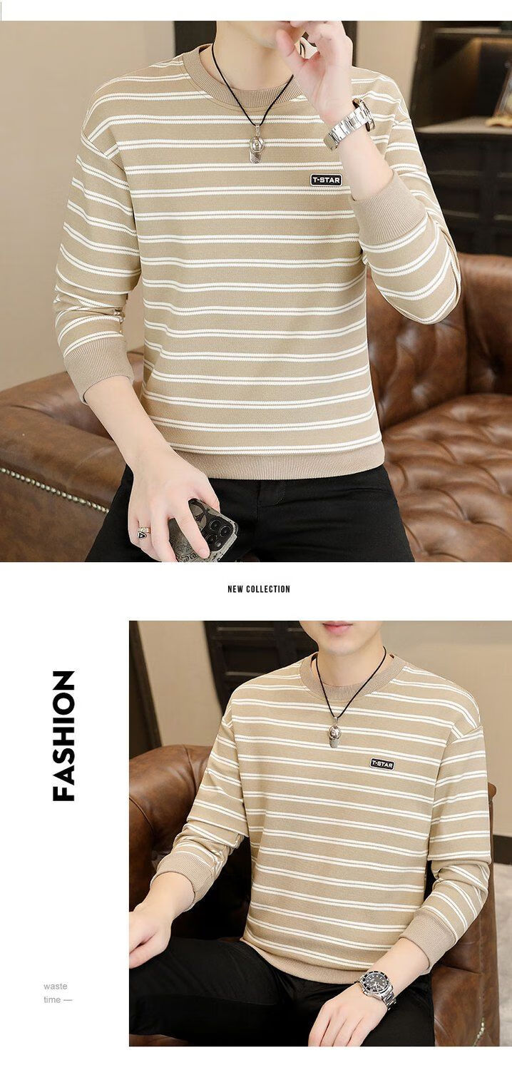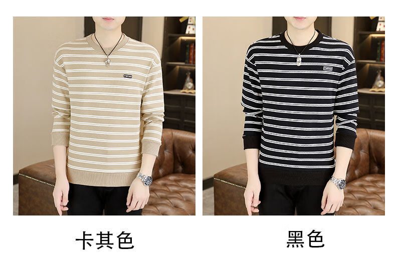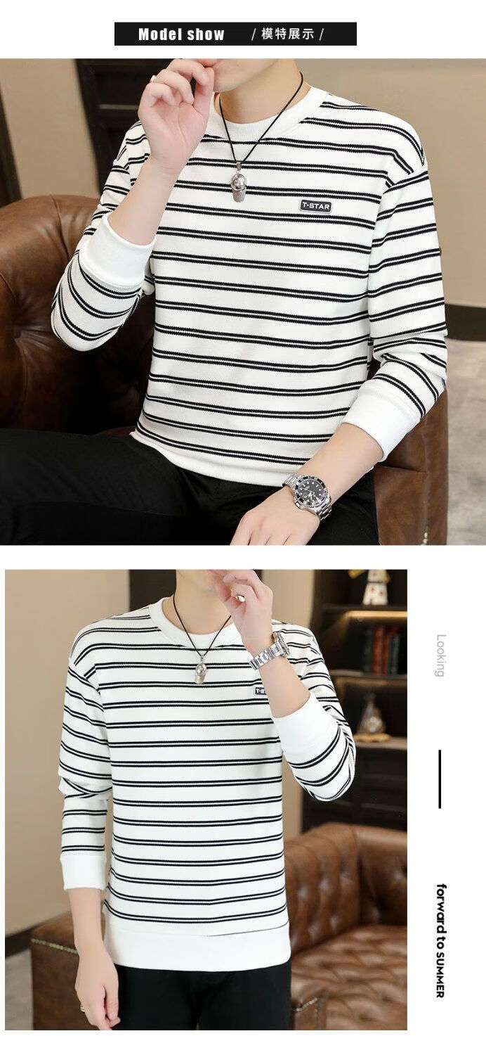 Playboy's new sweatshirt men's spring, autumn and winter round neck versatile slim fit plus velvet high-end striped men's long-sleeved T-shirt bottoming shirt 3376-black spring and autumn style XL recommended 130-145Jin Jin equals 0.5 kg