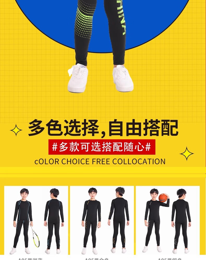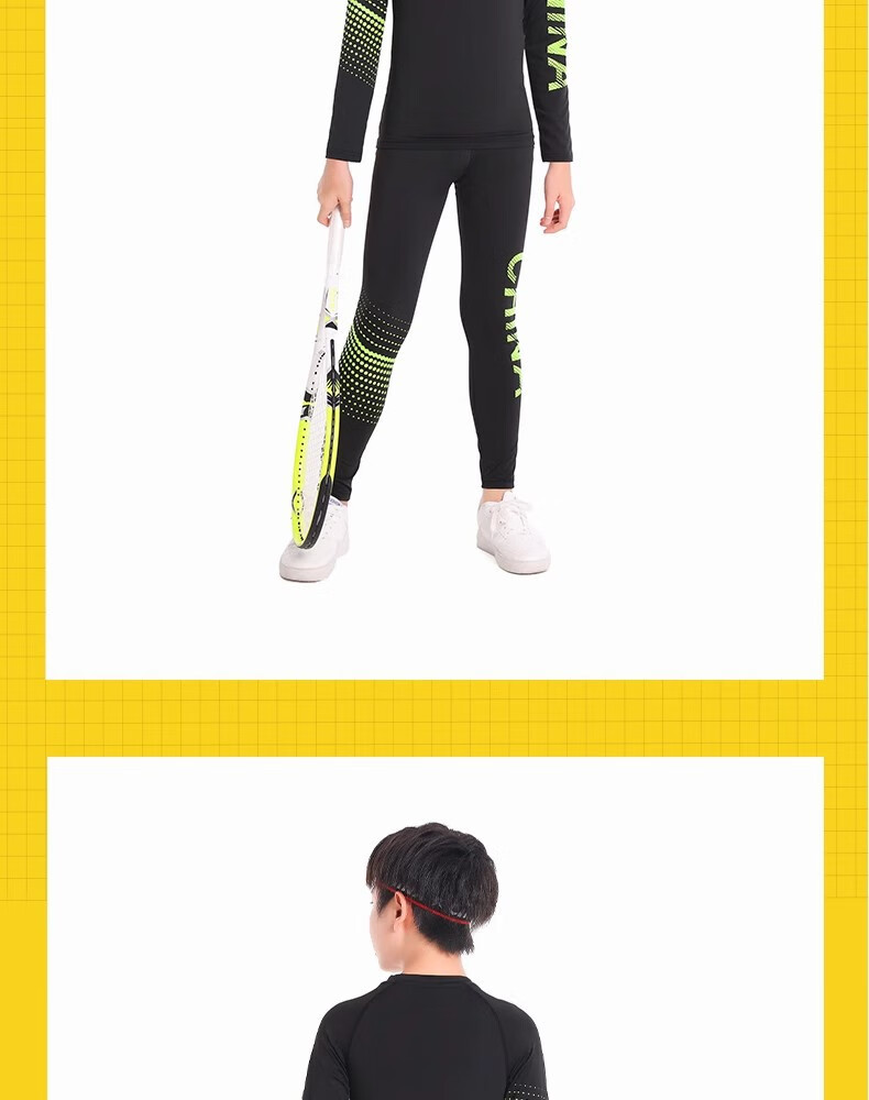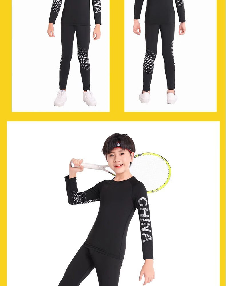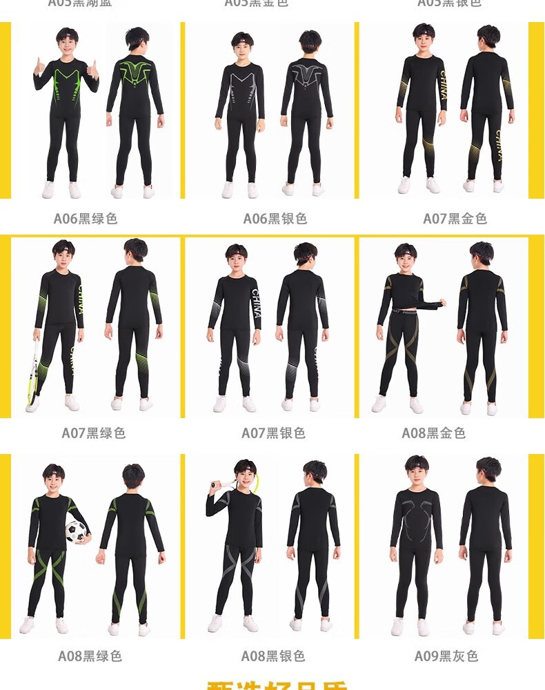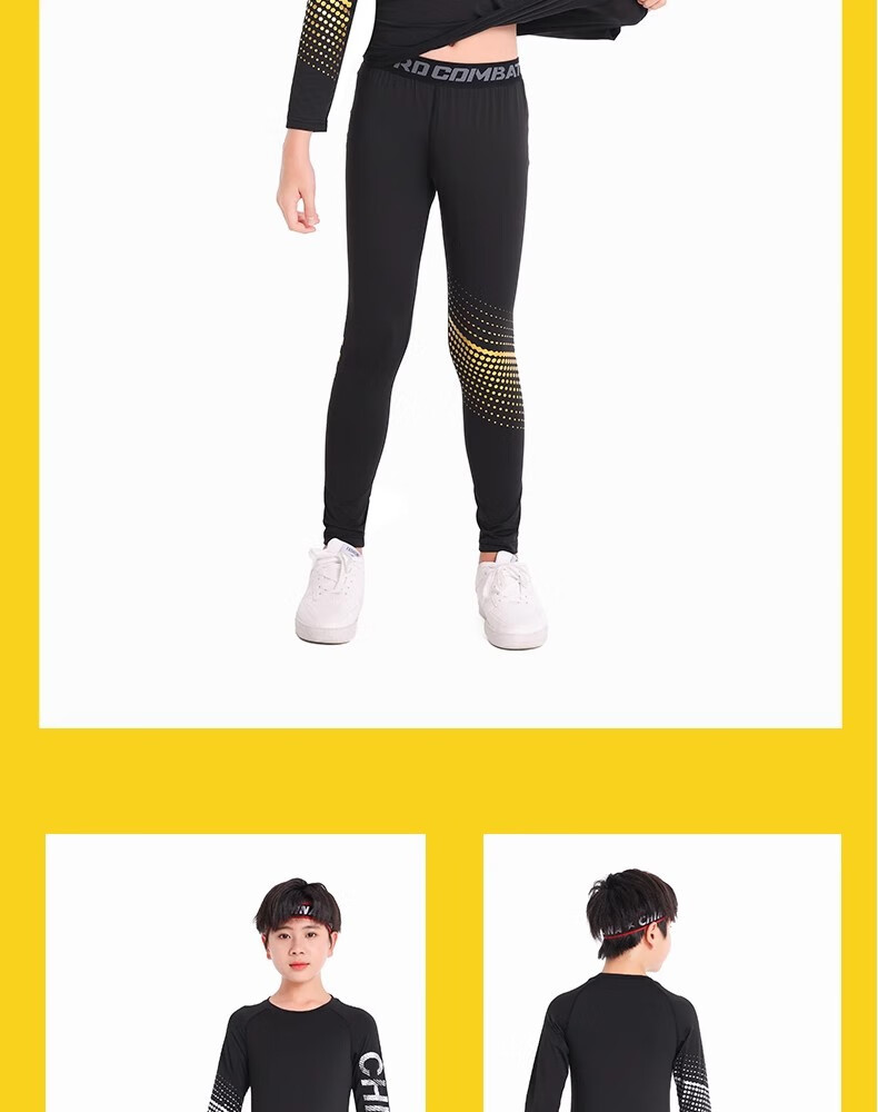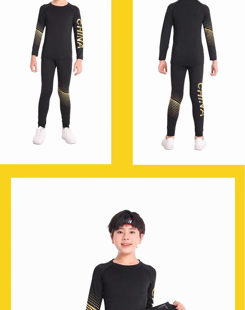 Upgraded version of children's fitness clothes training clothes quick-drying clothes high elasticity boys and girls sports football basketball tights A07 black gold size 24 recommended 120 high, 50Jin Jin is equal to about 0.5 kg