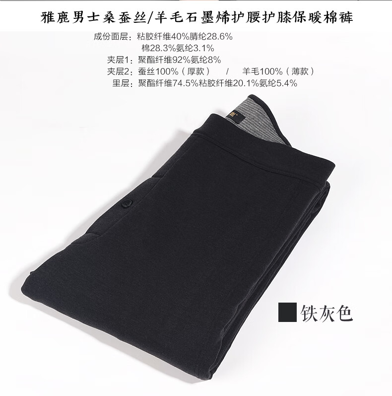 Yalu Men's Mulberry Silk Wool Warm Cotton Pants Plus Velvet Thickened Knee Pads Slim High Waist Warm Pants Youth Slim Cotton Pants Iron Gray - Silk Thickened 2XL (2.5-2.7 feet) There is weight in the size chart