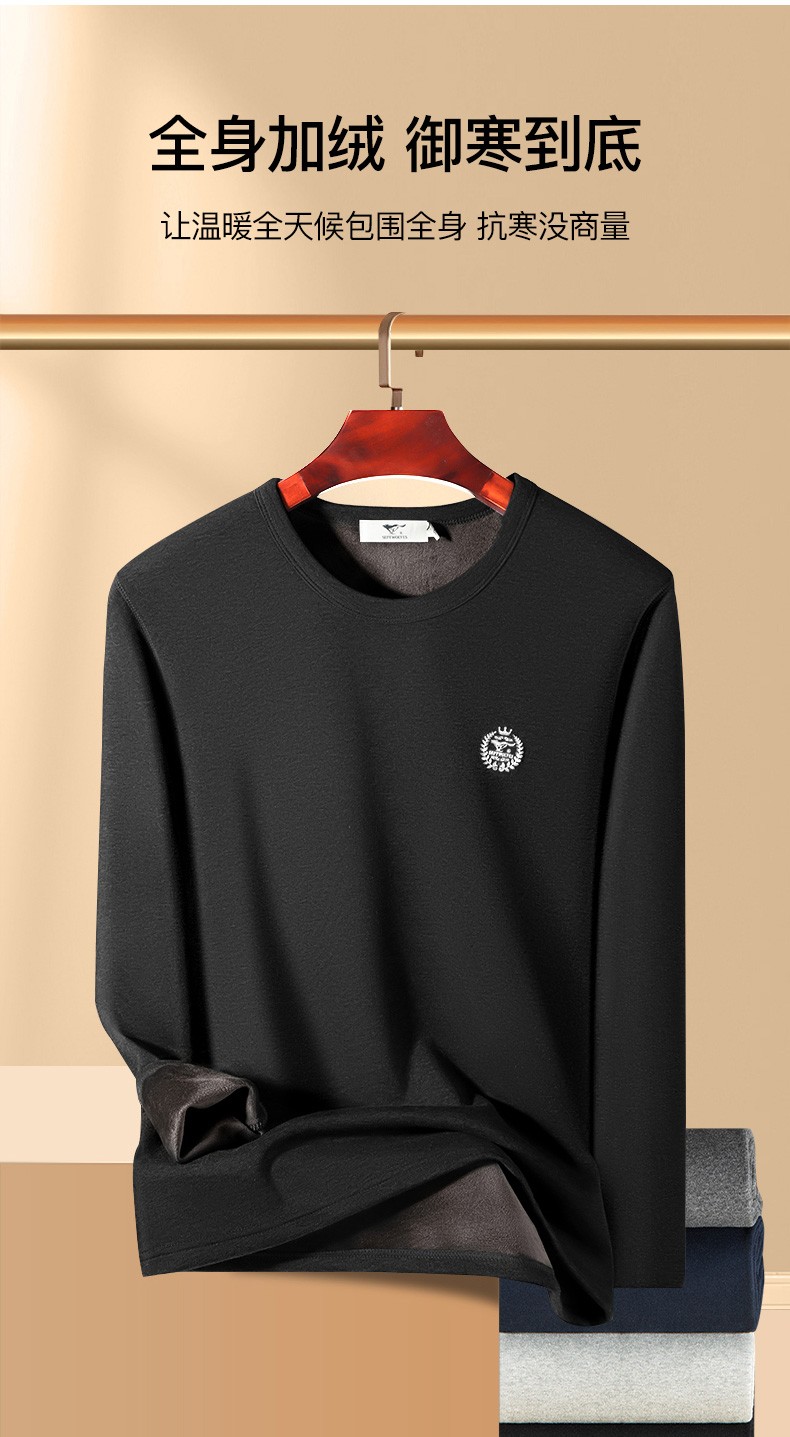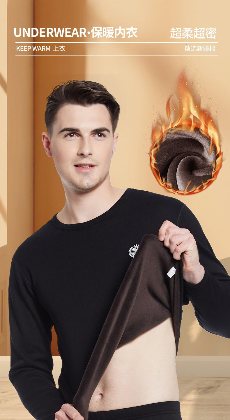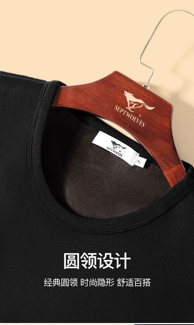 Septwolves men's thermal underwear men's velvet thickened top autumn and winter bottoming elastic slim fit super soft warm autumn clothing single piece round neck black thermal clothing-encrypted super soft velvet XL (175) Recommended weight 130-150Jin Jin is equal to 0.5 kg