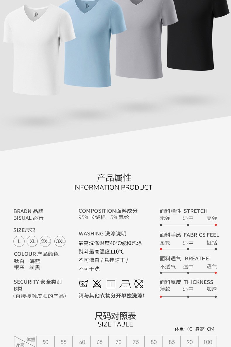 Bisual men's pure cotton short-sleeved T-shirt sports bottoming shirt men's seamless underwear V-neck tight vest breathable sweatshirt men's short-sleeved (2 pieces white) 2XL (suitable for 140-160Jin Jin equals 0.5 kg)