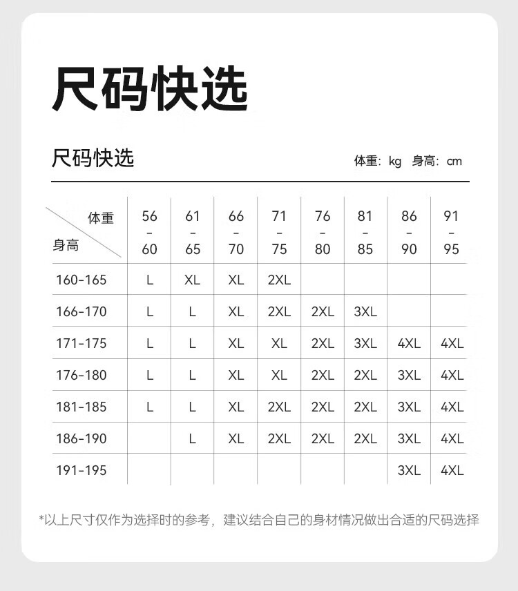 China (cm) 165 / 88-90 170 / 96-98 175 / 108-110 180 / 118-122 185 / 126-130