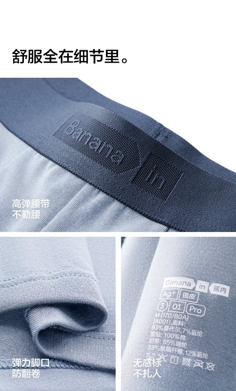 Banana Silver Leather 301P Modal Men's Underwear Four Seasons 7A Antibacterial Seamless Boxer Briefs Cotton Crotch Ice Silk Breathable 3 Pieces