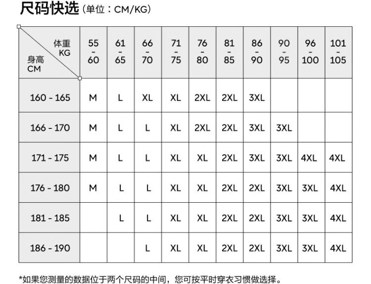 China (cm) 160-165/84-86 165-170 / 88-90 167-172 / 92-96 168-173 / 98-102 170-176 / 106-110