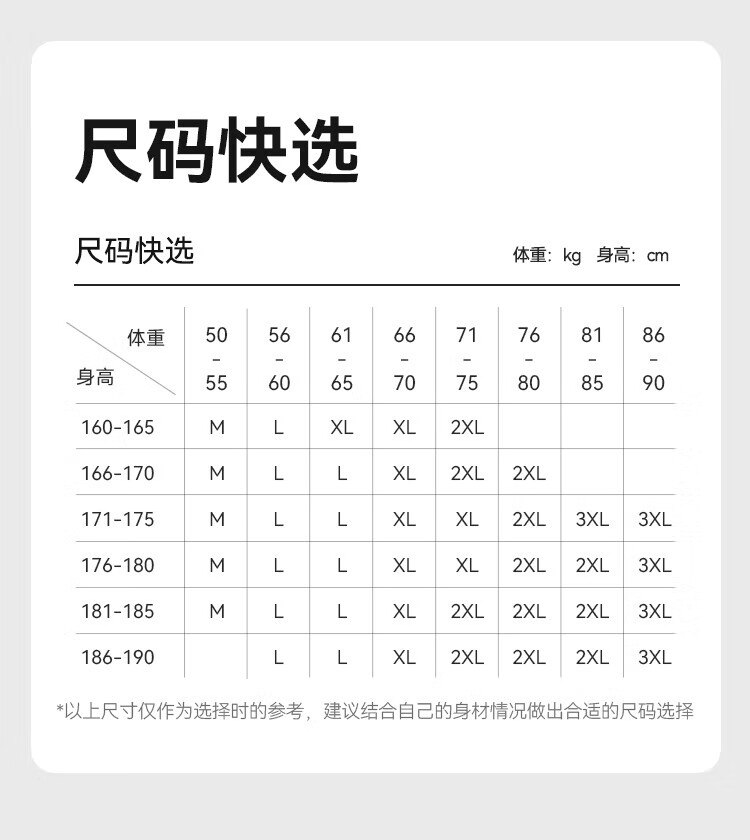 China (cm) 160-165/84-86 165-170 / 88-90 167-172 / 92-96 168-173 / 98-102 170-176 / 106-110