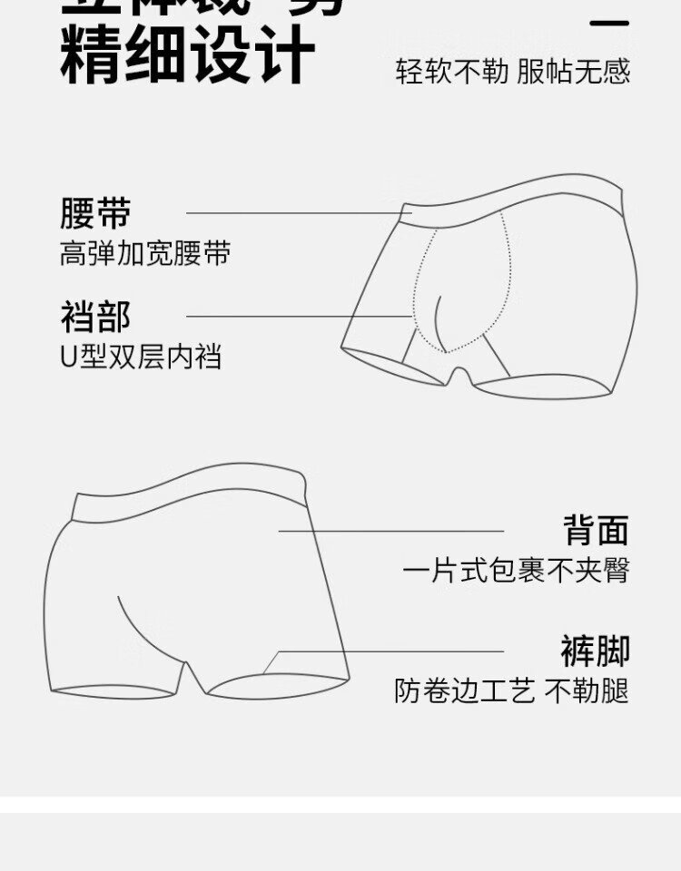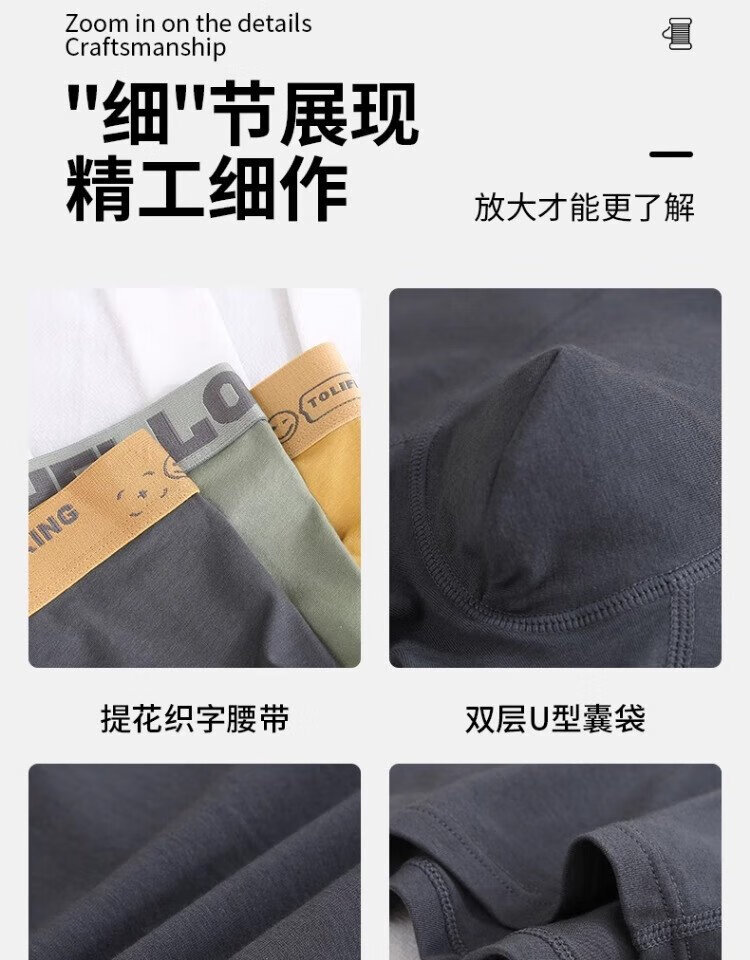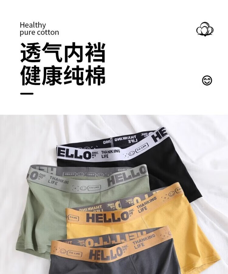 JEANSWEST men's underwear pure cotton boxer briefs large size 4 pairs