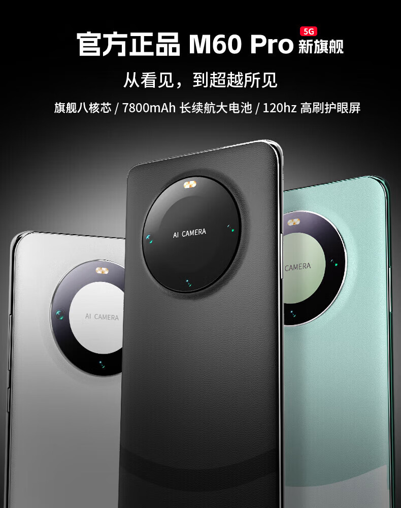 OPPUOI mobile phone 16G running 1TB large memory 2025 new model M60 Pro smartphone 120Hz high refresh rate 7800mAh large battery long life gaming 5G full network communication Dark Night Black flagship version 12+128G free 8 big gifts + three-year warranty