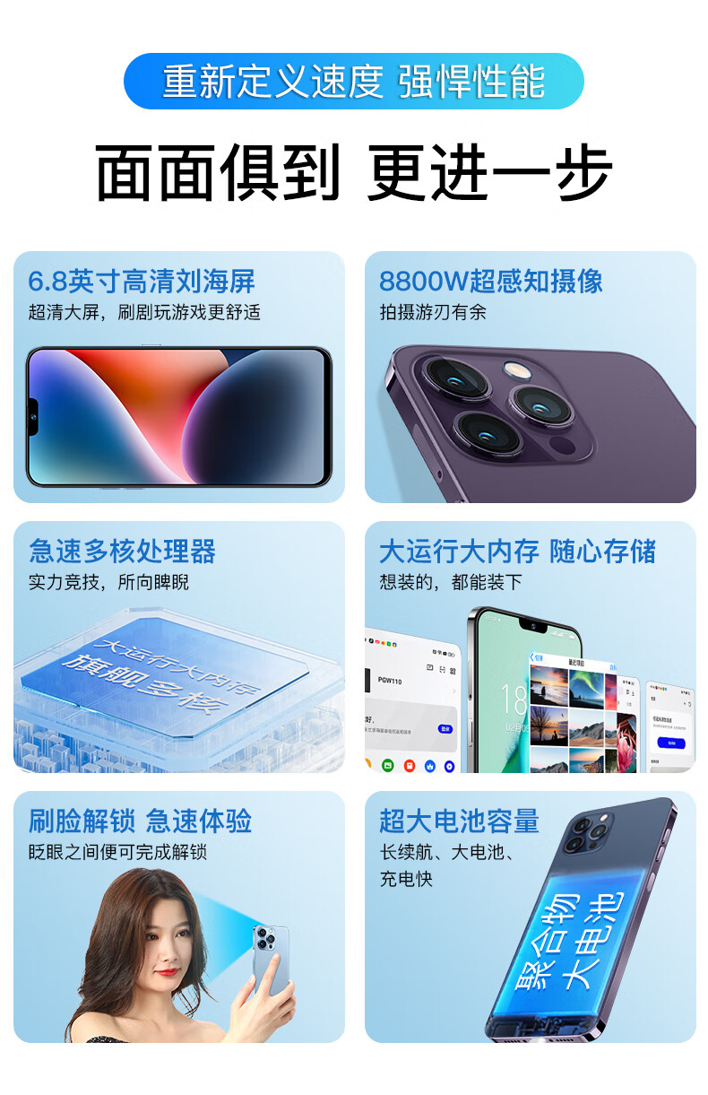 2025 new i15 original flagship Snapdragon large memory gaming smartphone Android 5G full Netcom white i15 full Netcom 5G* 5-year warranty 8G operation + 512G memory official standard complete mobile phone set