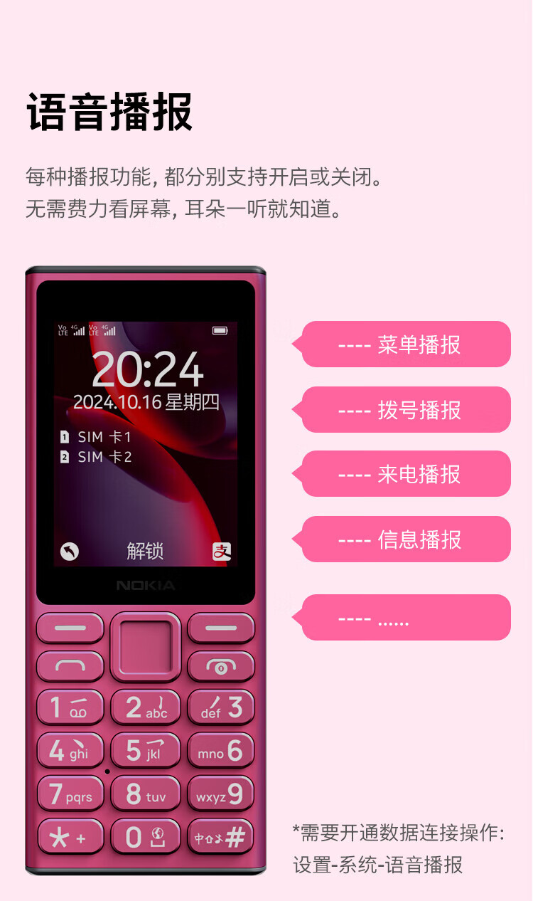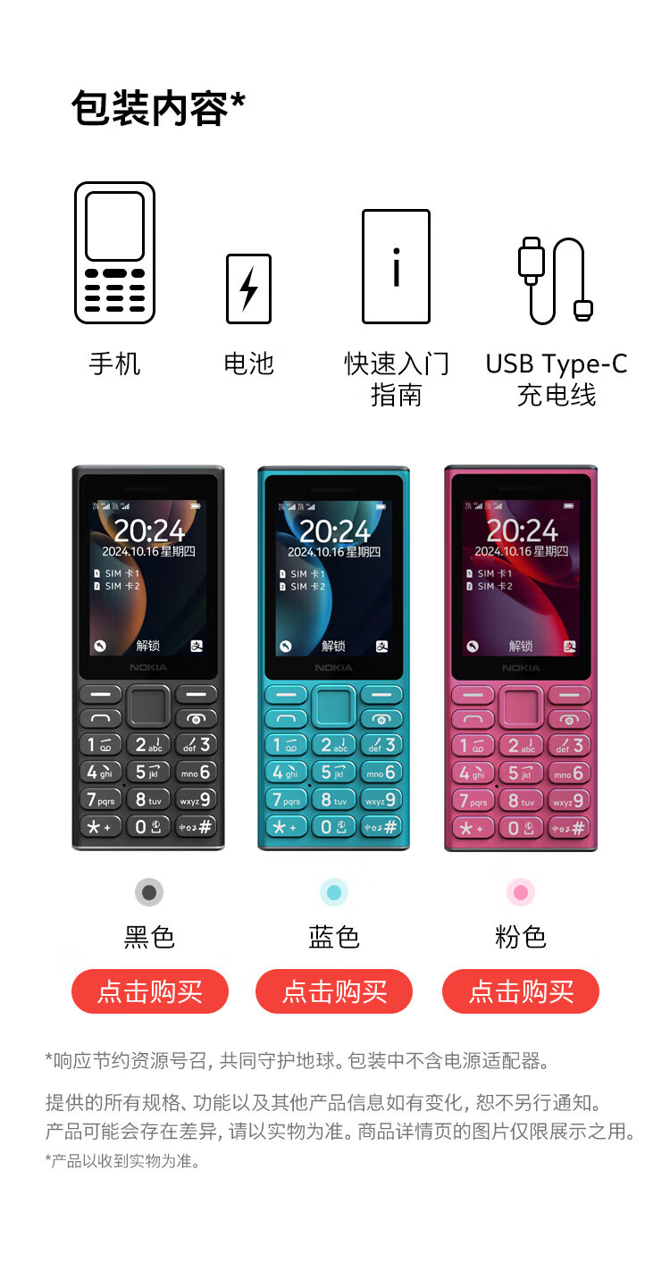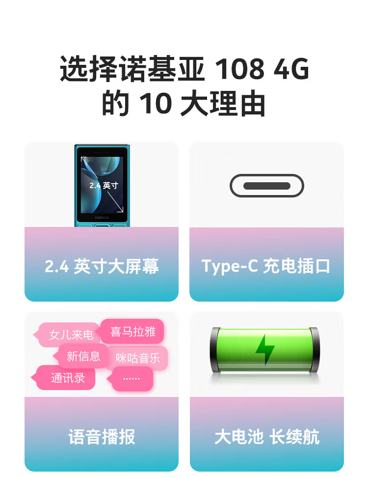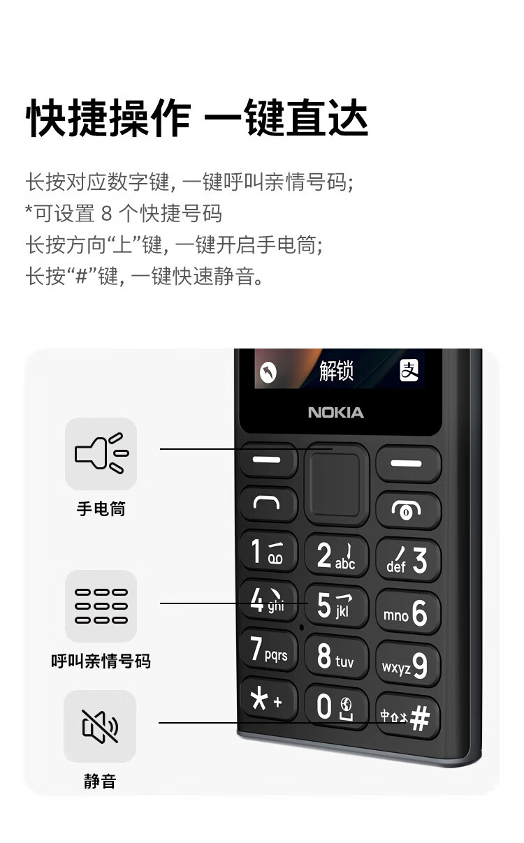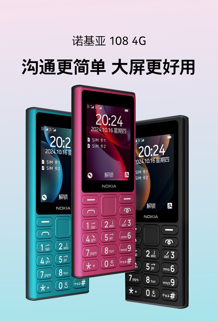 Nokia (NOKIA) 108 4G Mobile China Unicom Telecom Radio and Television Full Netcom 2.4-inch Dual SIM Dual Standby Straight Keyboard Function Machine Backup Mobile Phone for Students and Elderly People Black
