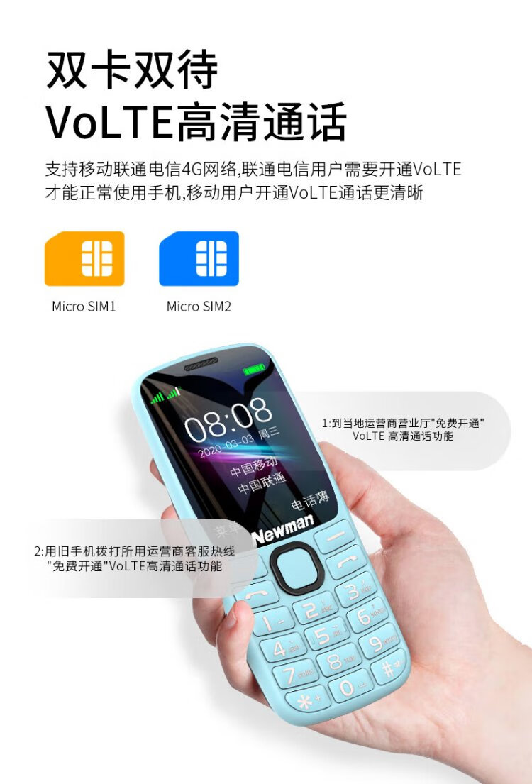 Newman (Newman) K99 Full Netcom 4G mobile phone for the elderly, super long standby, large screen, large characters, loud, mobile phone for the elderly, mobile Unicom Telecom version, male, female, and student white