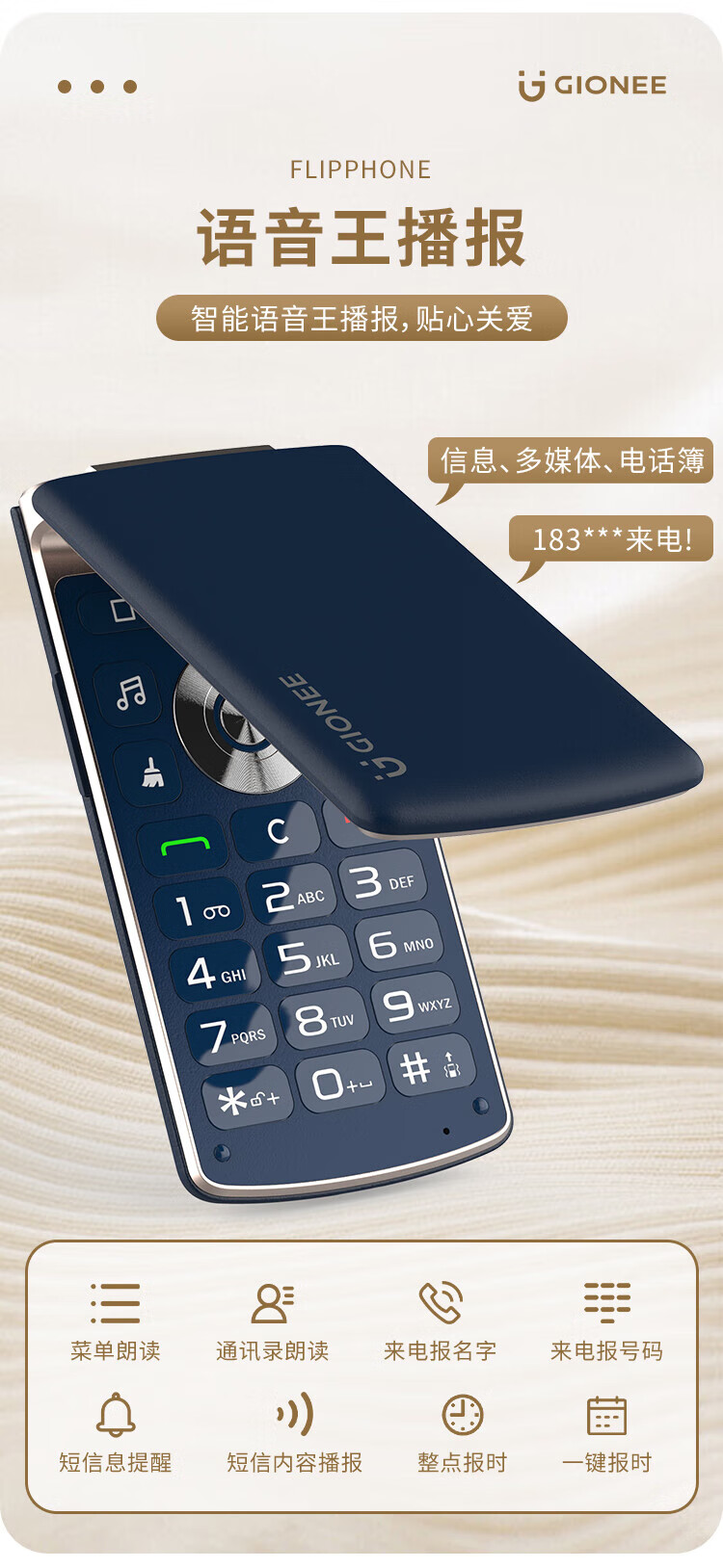Gionee Z15 one-click WeChat Douyin Kuaishou video smart flip full Netcom mobile phone for the elderly with large screen, big characters and loud sound, special for the elderly, three-proof, pure and ad-free, black