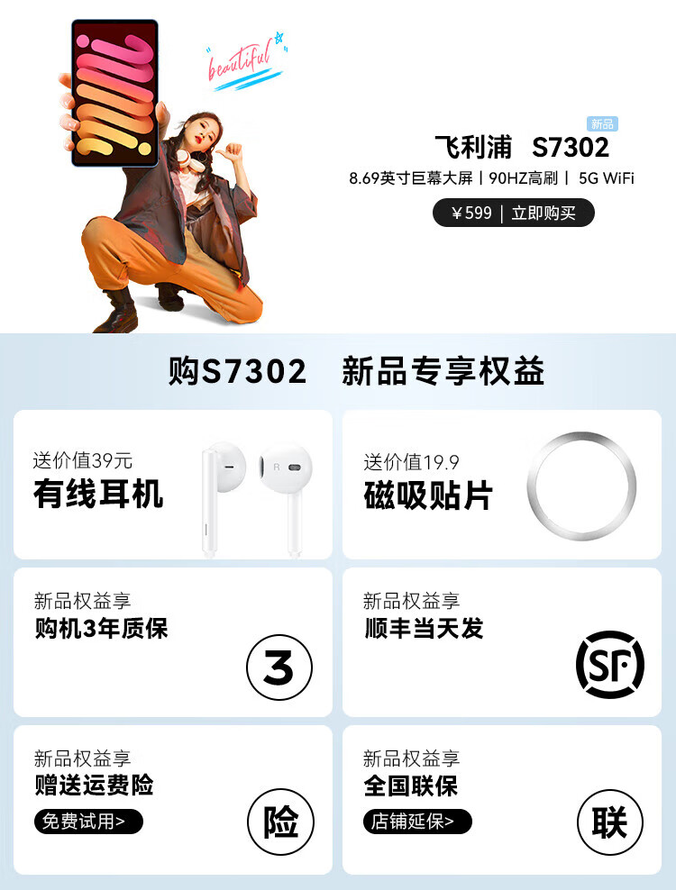 Philips S7302 super large screen mobile phone 20% subsidy for all Netcom 5G card 90HZ high refresh rate for gaming, office learning, ultra-thin anti-fall 8.68-inch large screen and large characters backup phone for the elderly, space gray package 1, free customized leather case + wired headphones + magnetic patch 20GB + 128GB