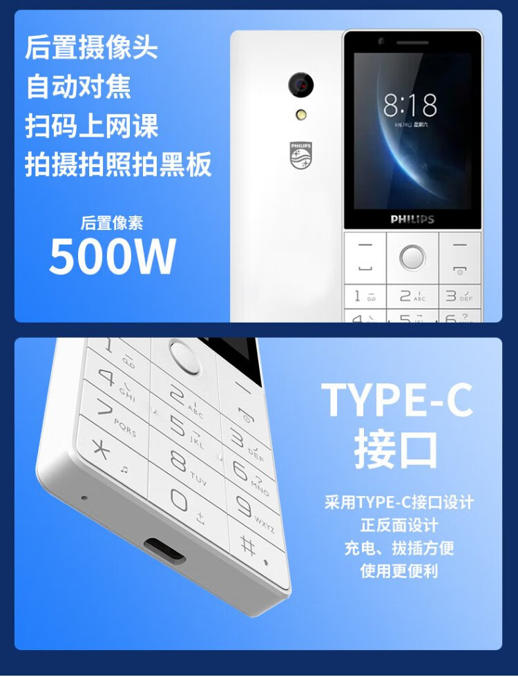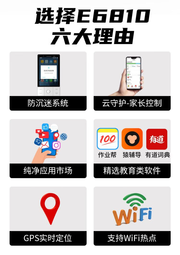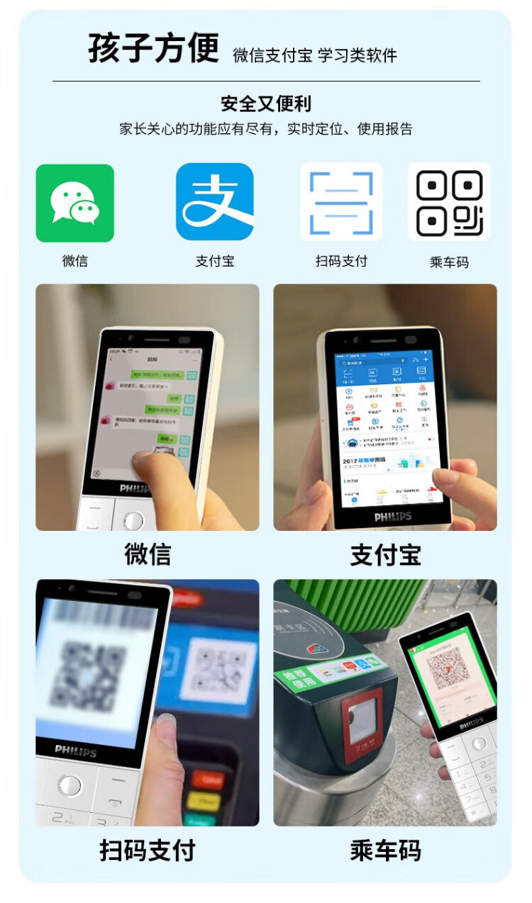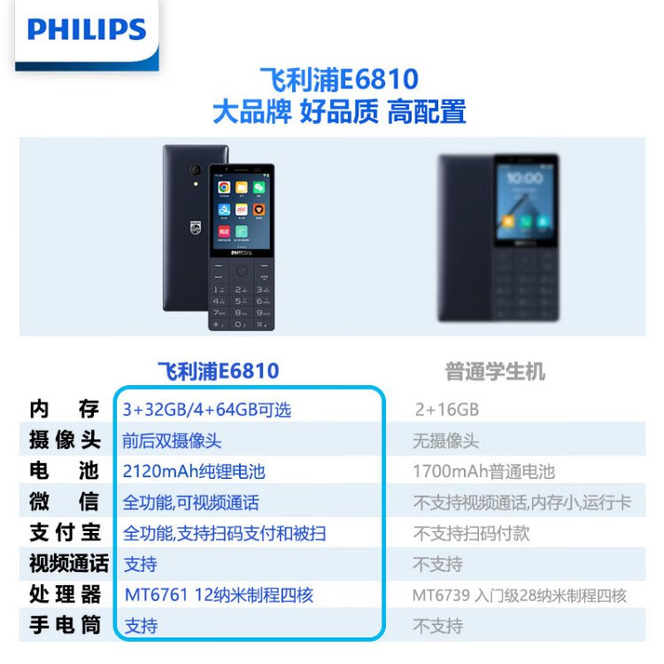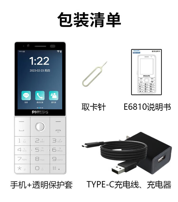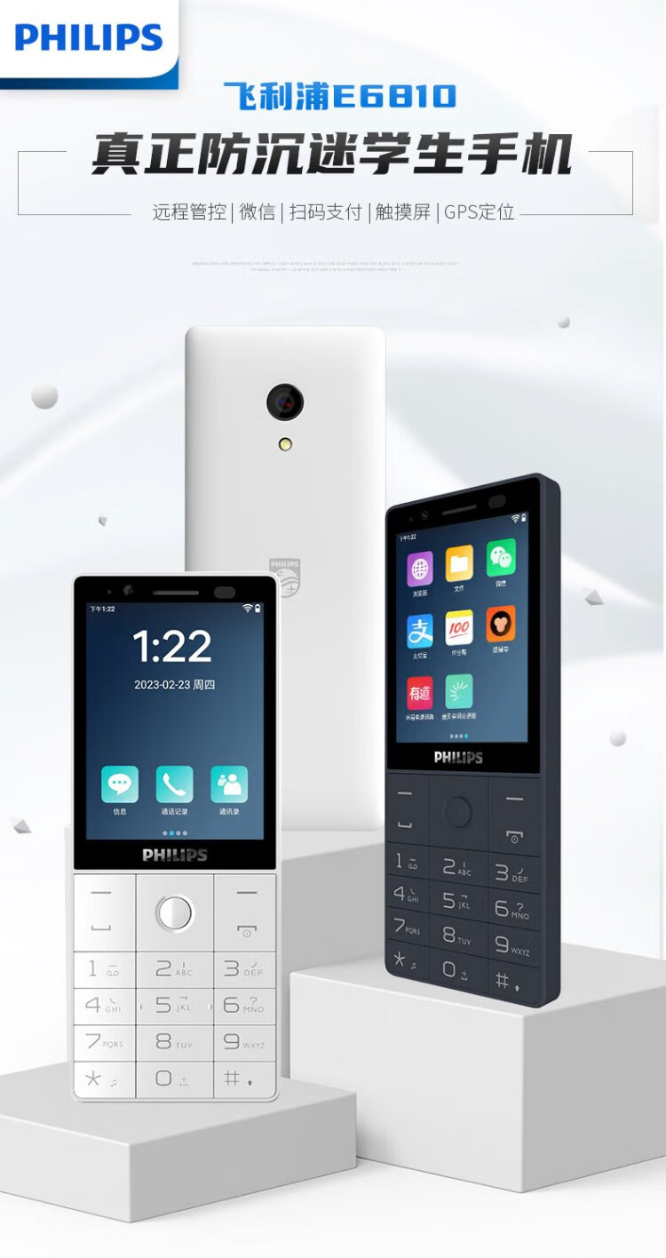 Philips (PHILIPS) E6810 student mobile phone 4G full network smart GPS positioning parent control WeChat video anti-addiction and Internet addiction touch screen button for the elderly 4+64G
