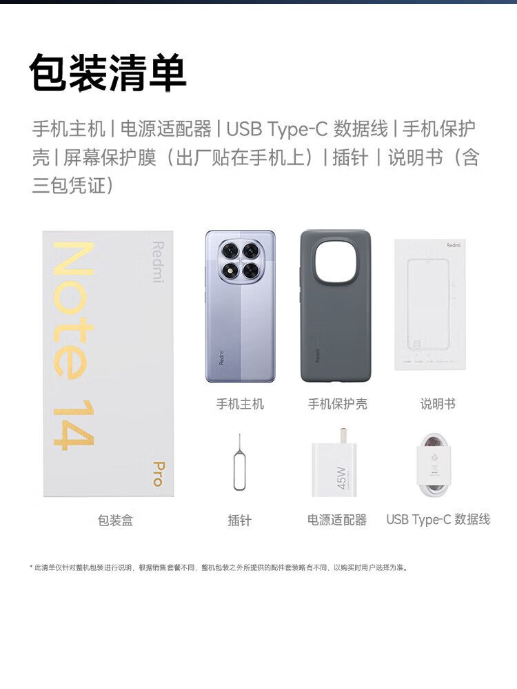 Xiaomi (MI) Redmi note14 Pro 5G mobile phone Dimensity 7300 1.5K high-gloss eye protection screen IP68 waterproof 8GB+256GB Midnight Black Xiaomi mobile phone Redmi mobile phone