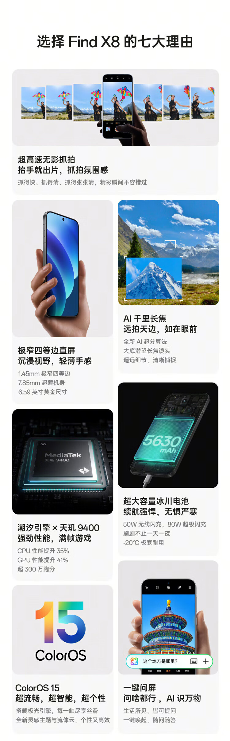 OPPO Find X8 12GB+256GB Hoshino Black Shadowless Capture Ultra-thin Direct Screen Dimensity 9400 AI One-click Screen Question 5630mAh Glacier Battery 5G Mobile Phone