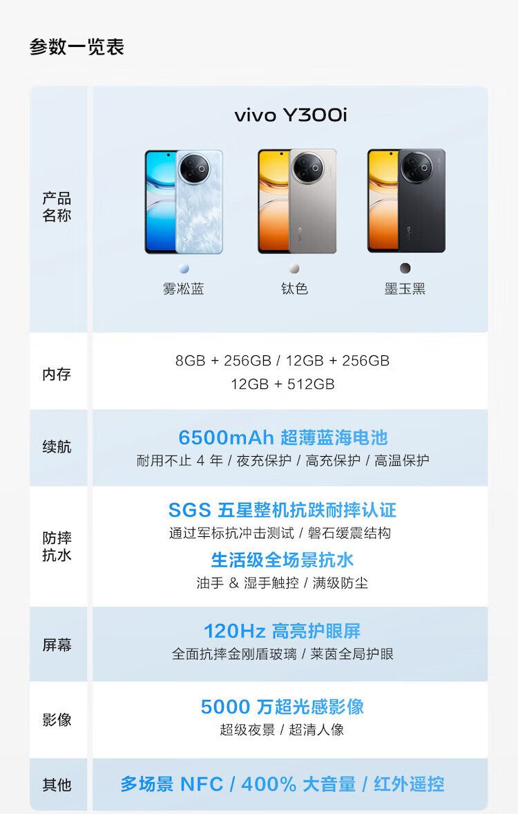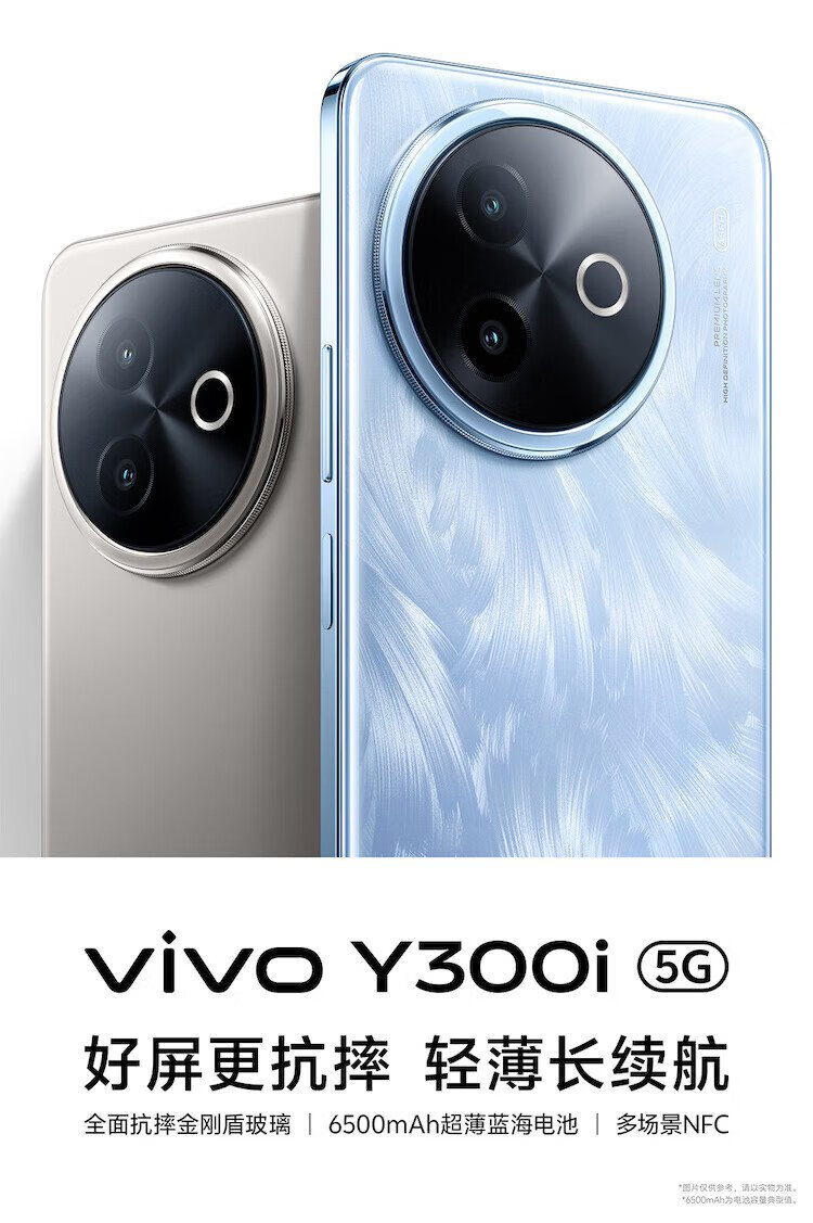 Vivo Y300i 12GB+512GB, Jet Black, Fully Anti-fall Diamond Shield Glass, 6500mAh Ultra-Thin Battery, Dual Speakers for Large Volume, Free Phone Coupon, National Subsidy