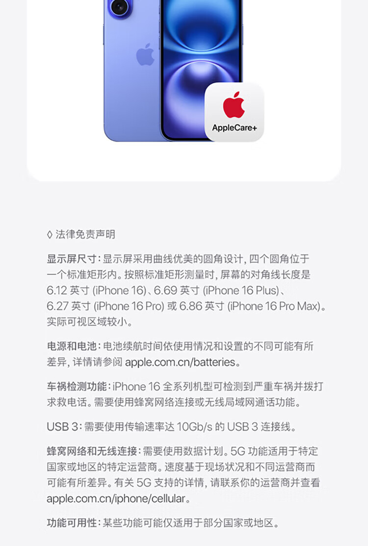 Apple/Apple iPhone 16 256GB black supports China Unicom and China Telecom 5G mobile phone and comes with a mobile data card