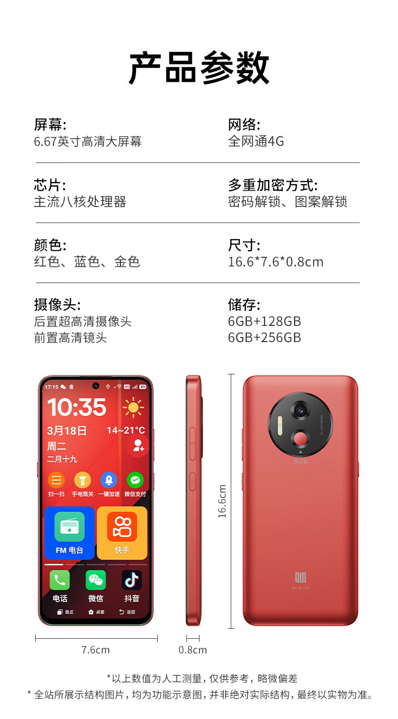 Duoqin (QIN) QinL1 can be used by illiterate elderly people. One-click WeChat video smart phone for the elderly. Automatically answer incoming calls. Remote assistance to prevent lost mobile phones. 128G Star Blue