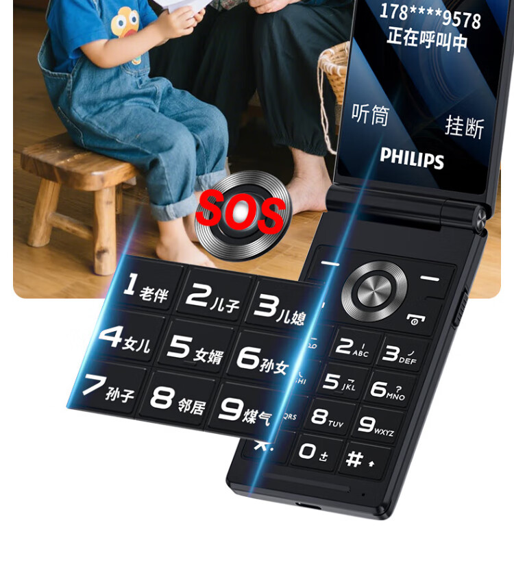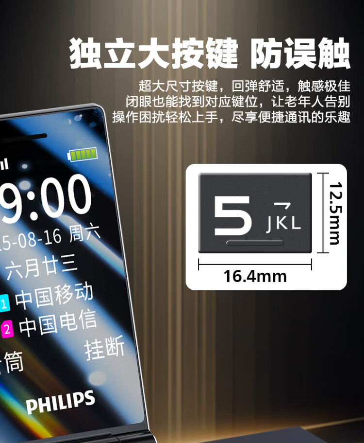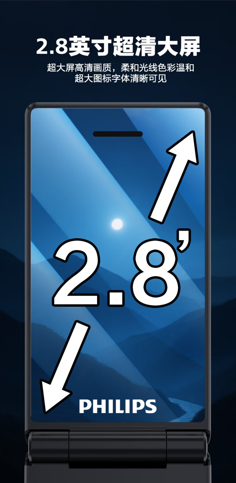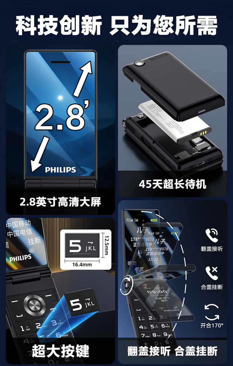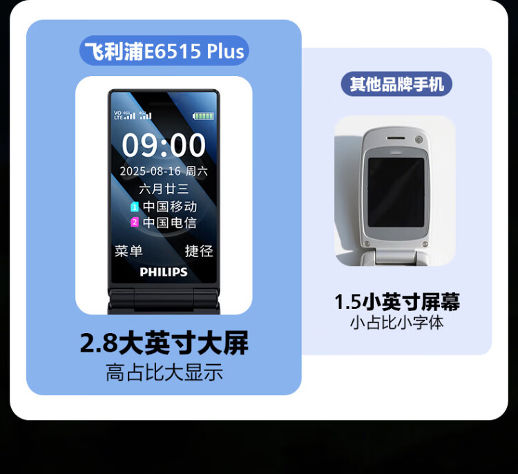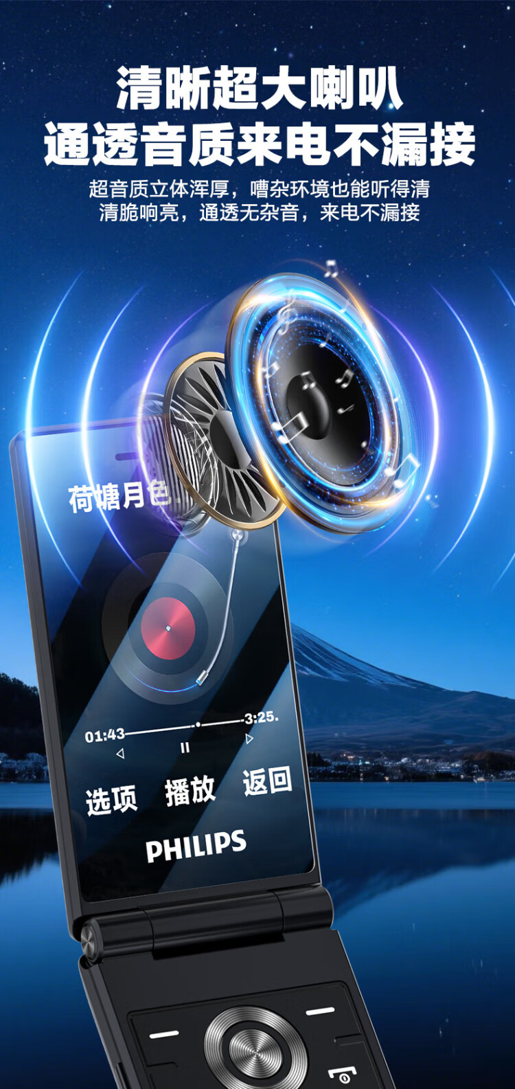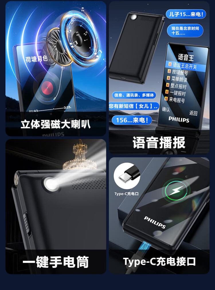 Philips (PHILIPS) E6515Plus mobile phone for the elderly, super long standby, flip phone for the elderly, 4G full network communication, big characters, big sound, big buttons, student dual-screen functional phone for the elderly, Starry Sky Black