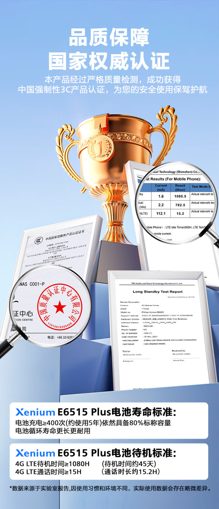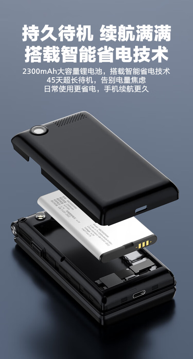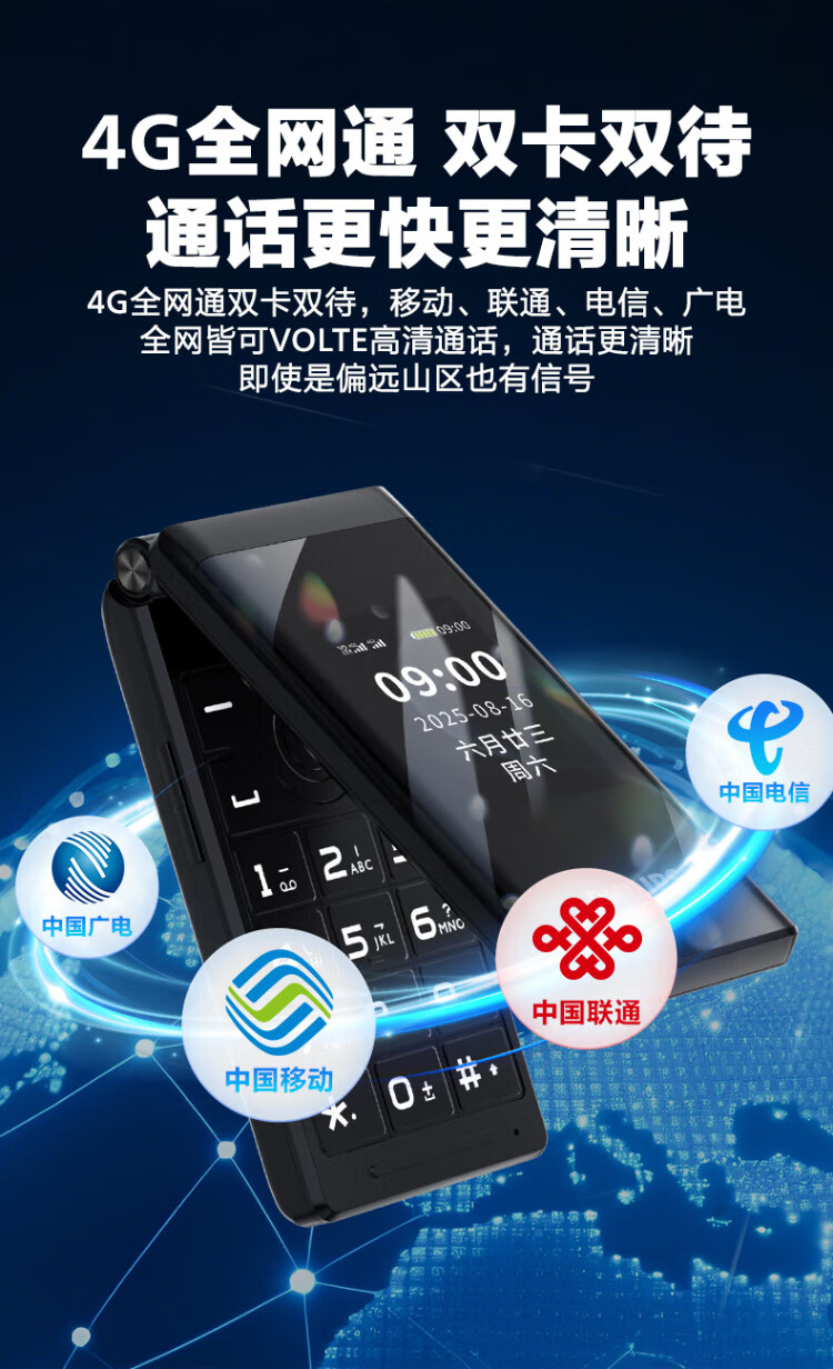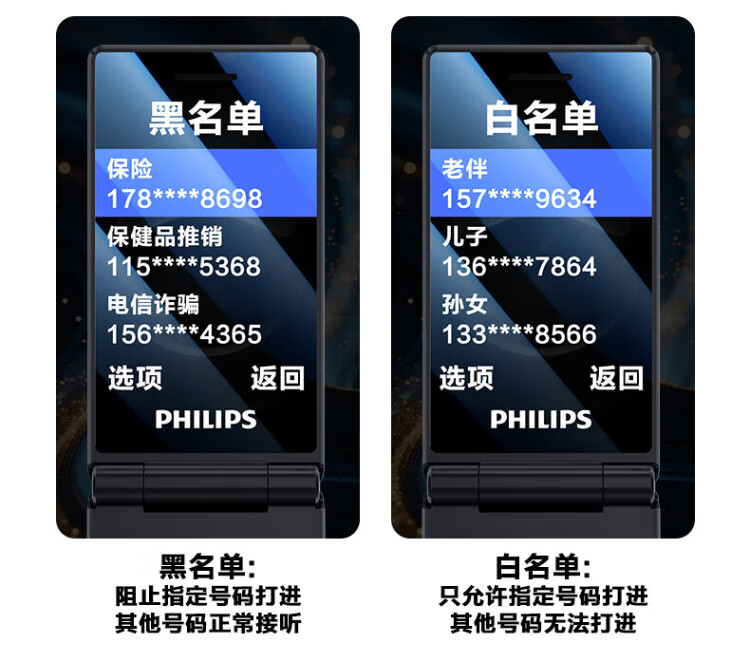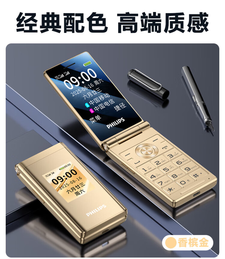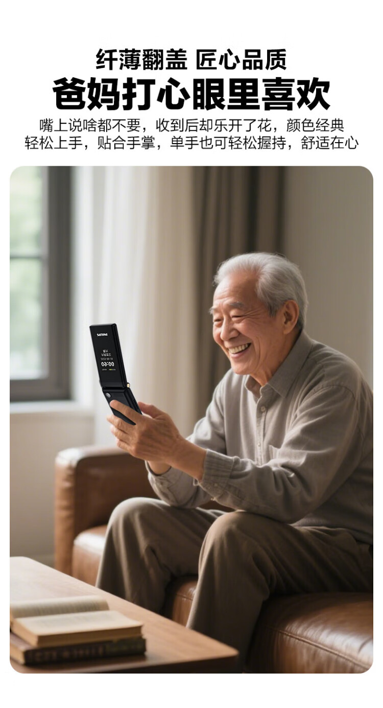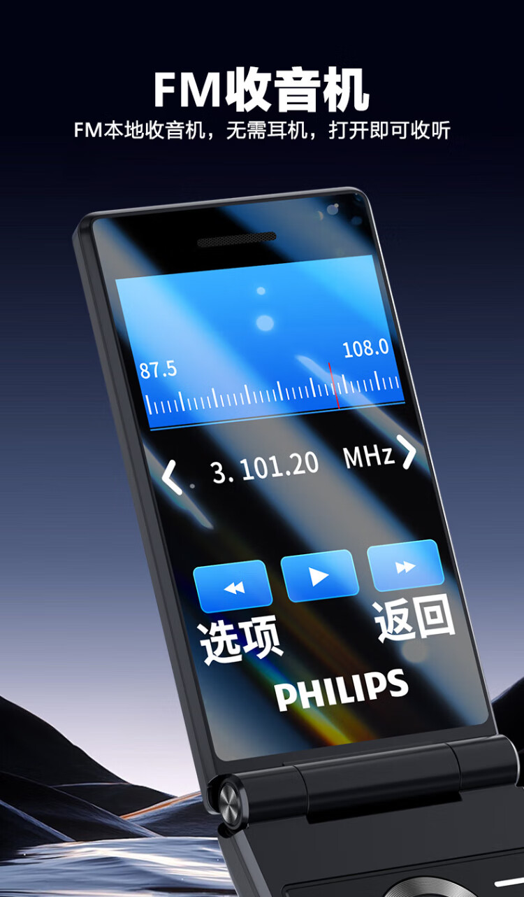 Philips (PHILIPS) E6515Plus mobile phone for the elderly, super long standby, flip phone for the elderly, 4G full network communication, big characters, big sound, big buttons, student dual-screen functional phone for the elderly, Starry Sky Black