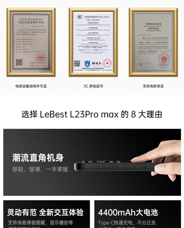 LEBEST Pepsi L23pro max brand new ultra-thin eight-core smartphone student cheap large screen 100 yuan long battery life elderly backup machine e-sports 64G black titanium