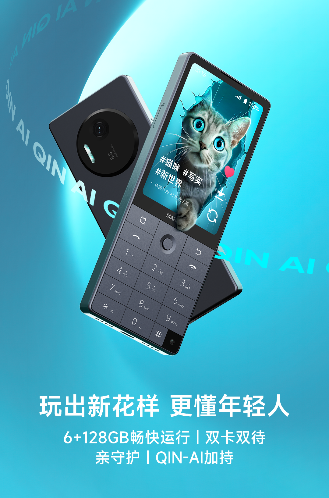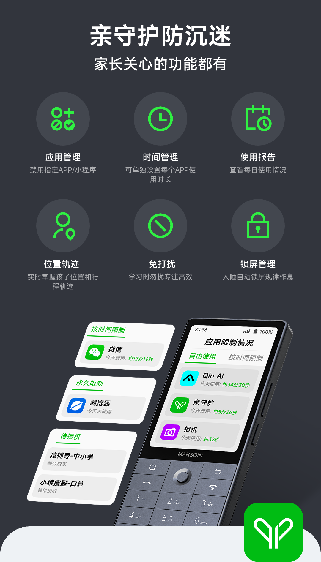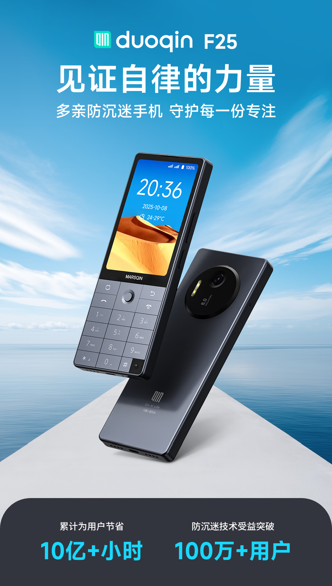 Duoqin (QIN) Qin F25 anti-addiction student mobile phone, smart learning mobile phone for middle and high school students, 4G full network controllable phone, dual SIM card dual standby 6+128g, iron gray