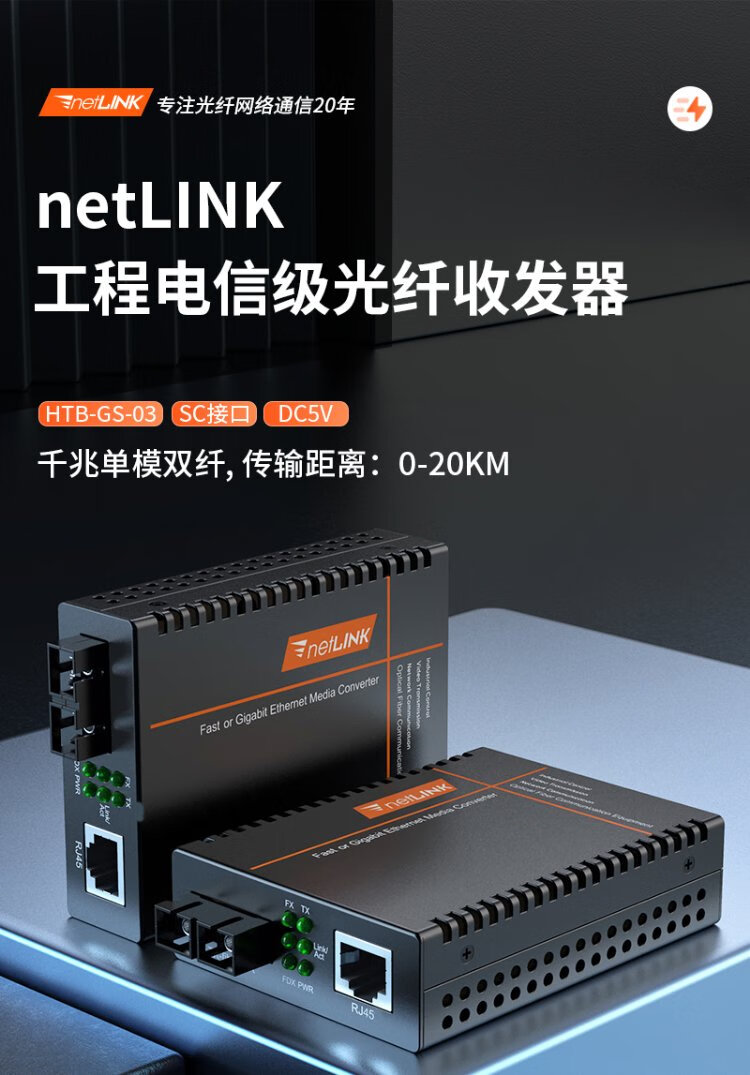NetLINK HTB-GS-03 Gigabit single-mode dual-fiber fiber optic transceiver Engineering telecommunication grade photoelectric converter SC interface 0-20KM pair