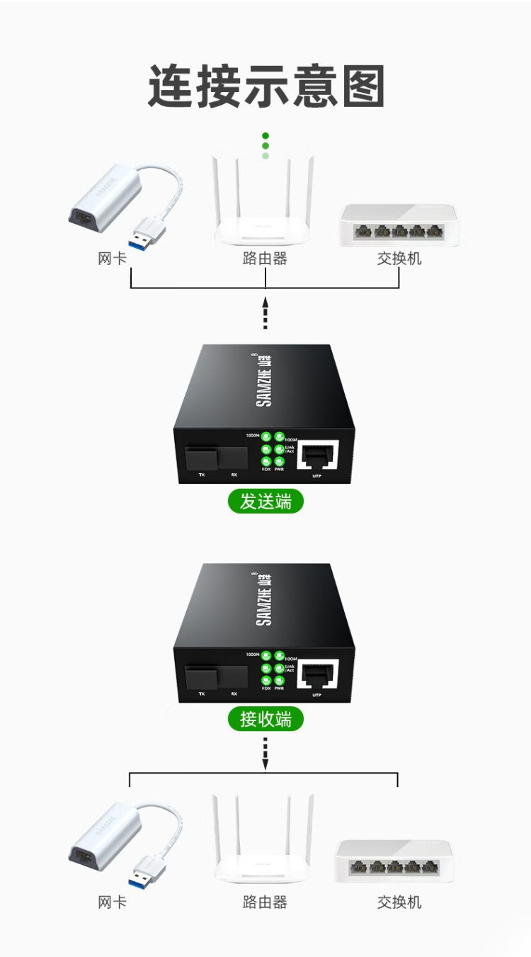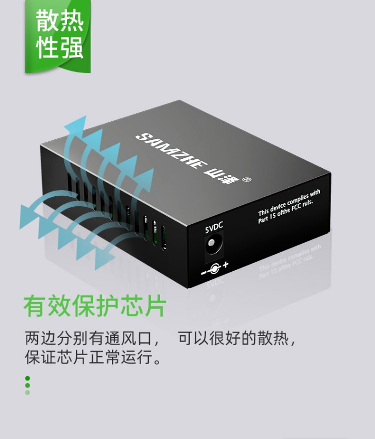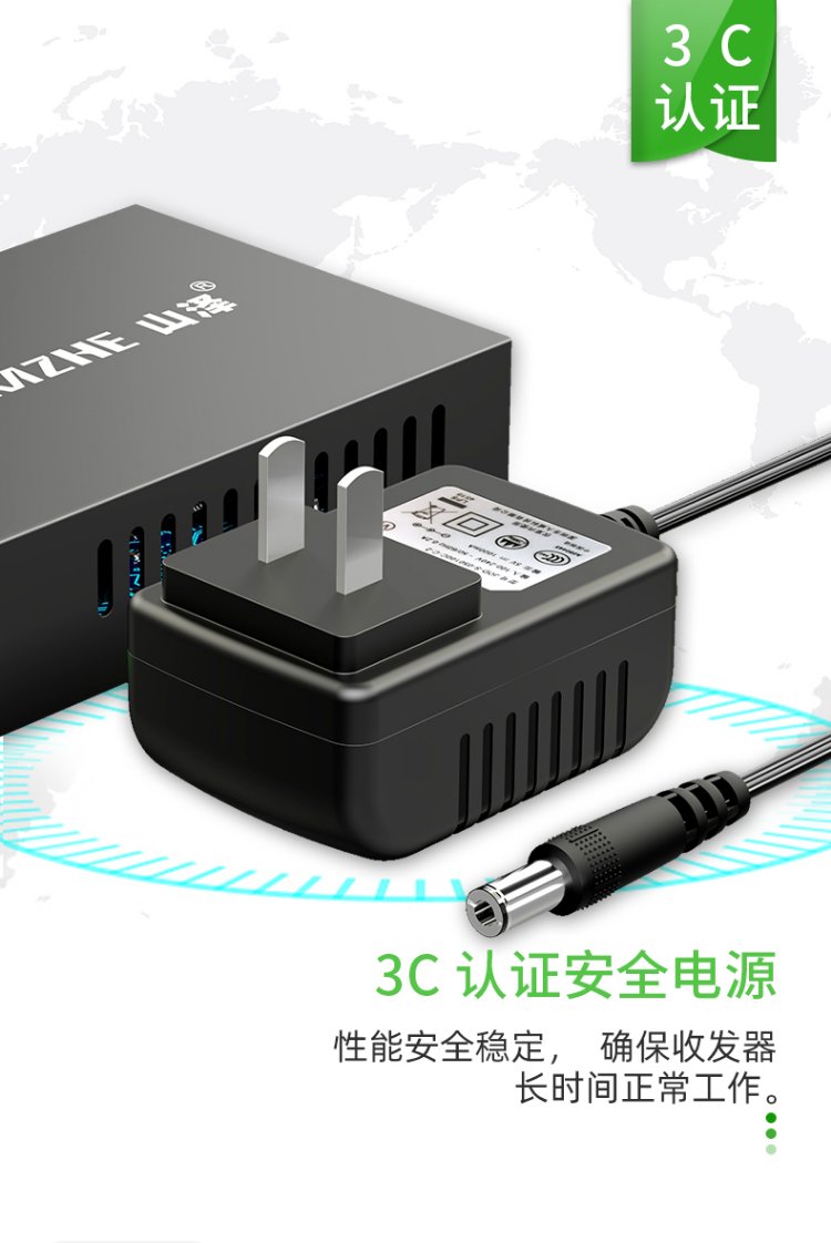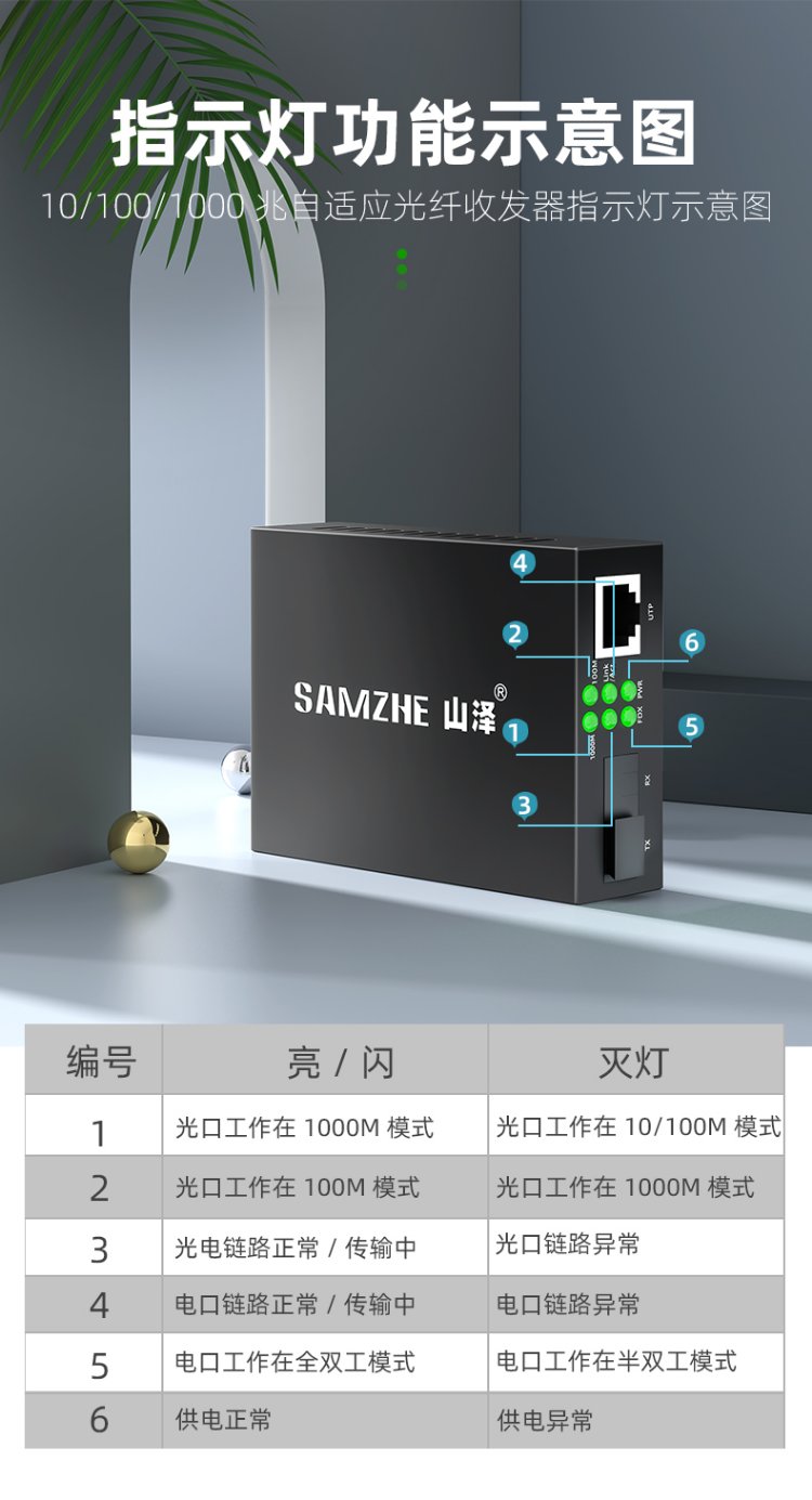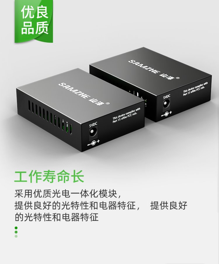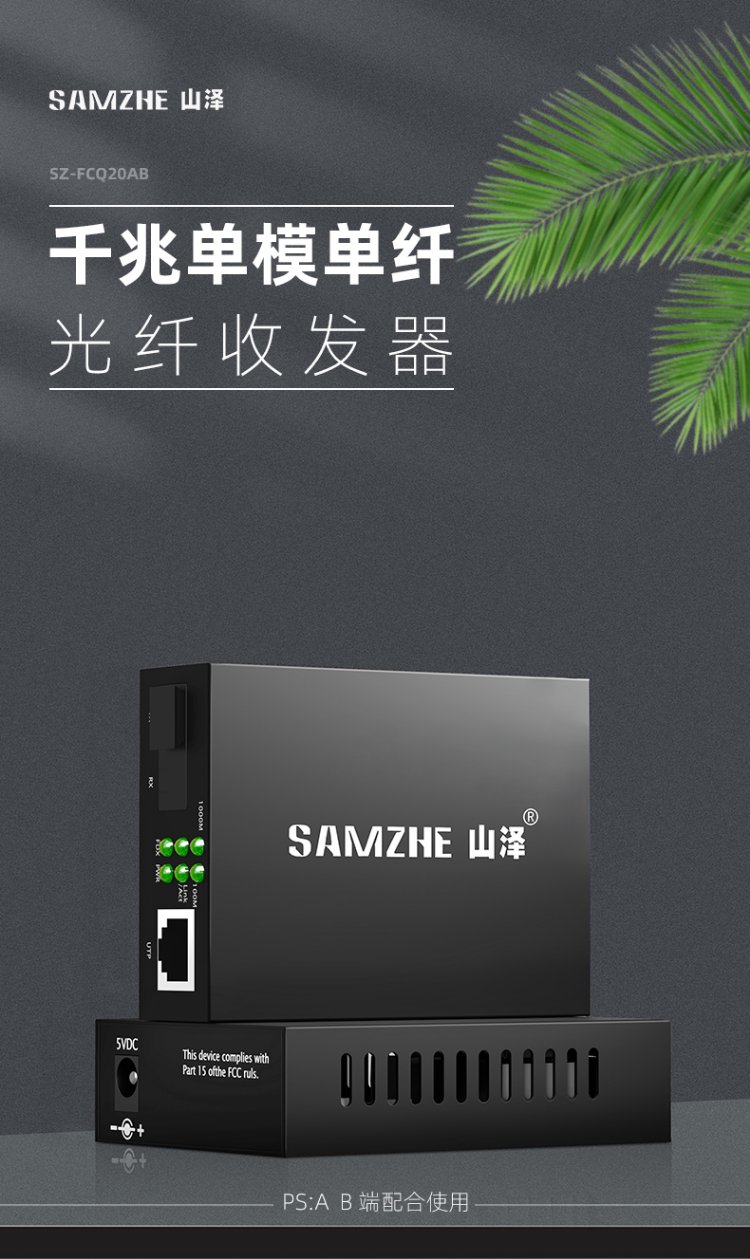 山泽【防雷防浪涌】光纤收发器 单模单纤光电转换器 20KM 网络监控SC接口千兆自适应 一对 SZ-FCQ20AB