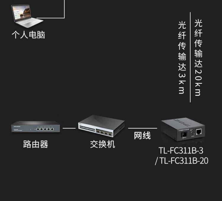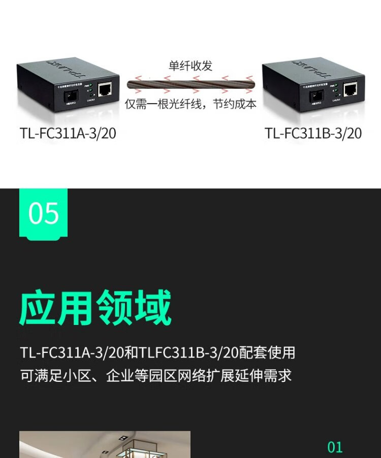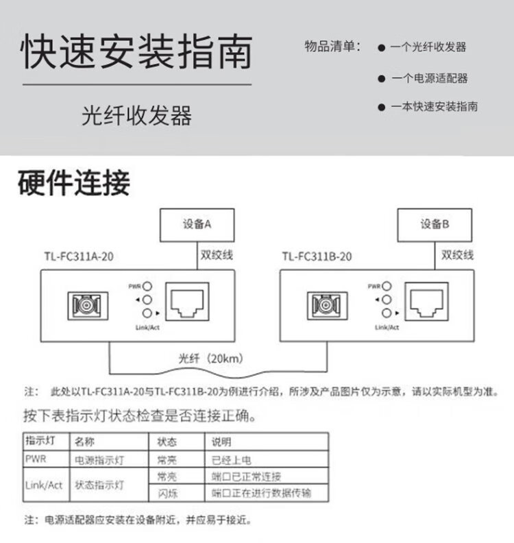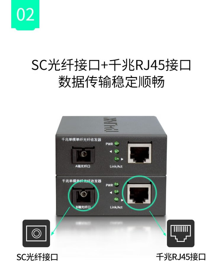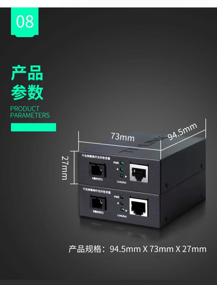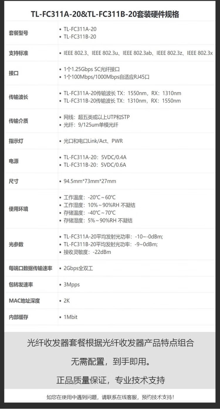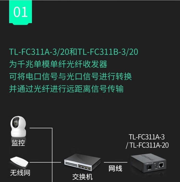 TP-LINK普联千兆单模单纤光纤收发器一对1光1电转换器20公里传输SC接口TL-FC311A-20+TL-FC311B-20套装