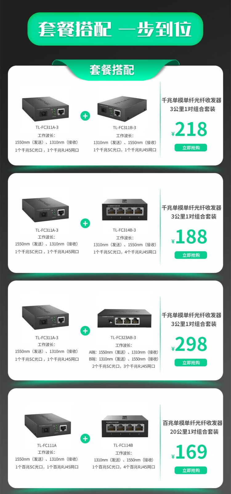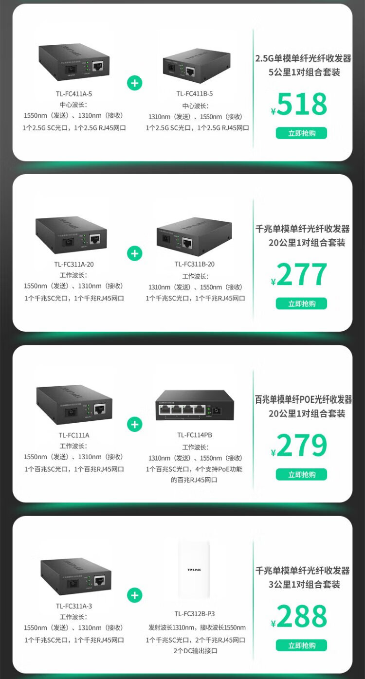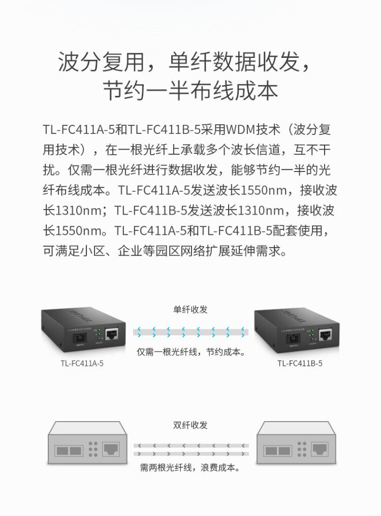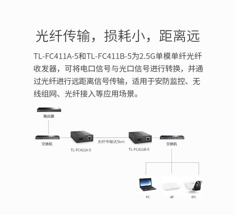 TP-LINK Pulian 2.5G single-mode single fiber optical fiber transceiver pair 5 km transmission SC port 1 optical 1 electrical converter TL-FC411A-5+TL-FC411B-5 set