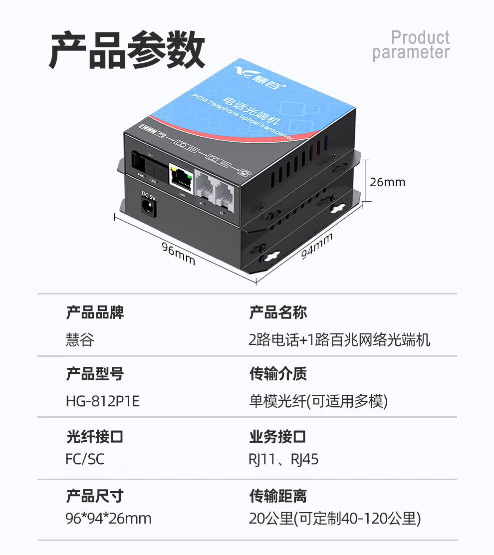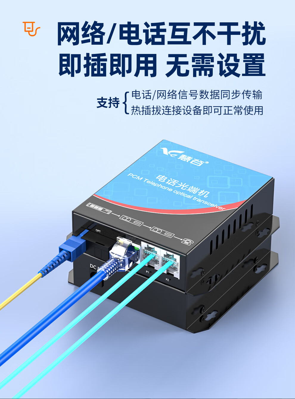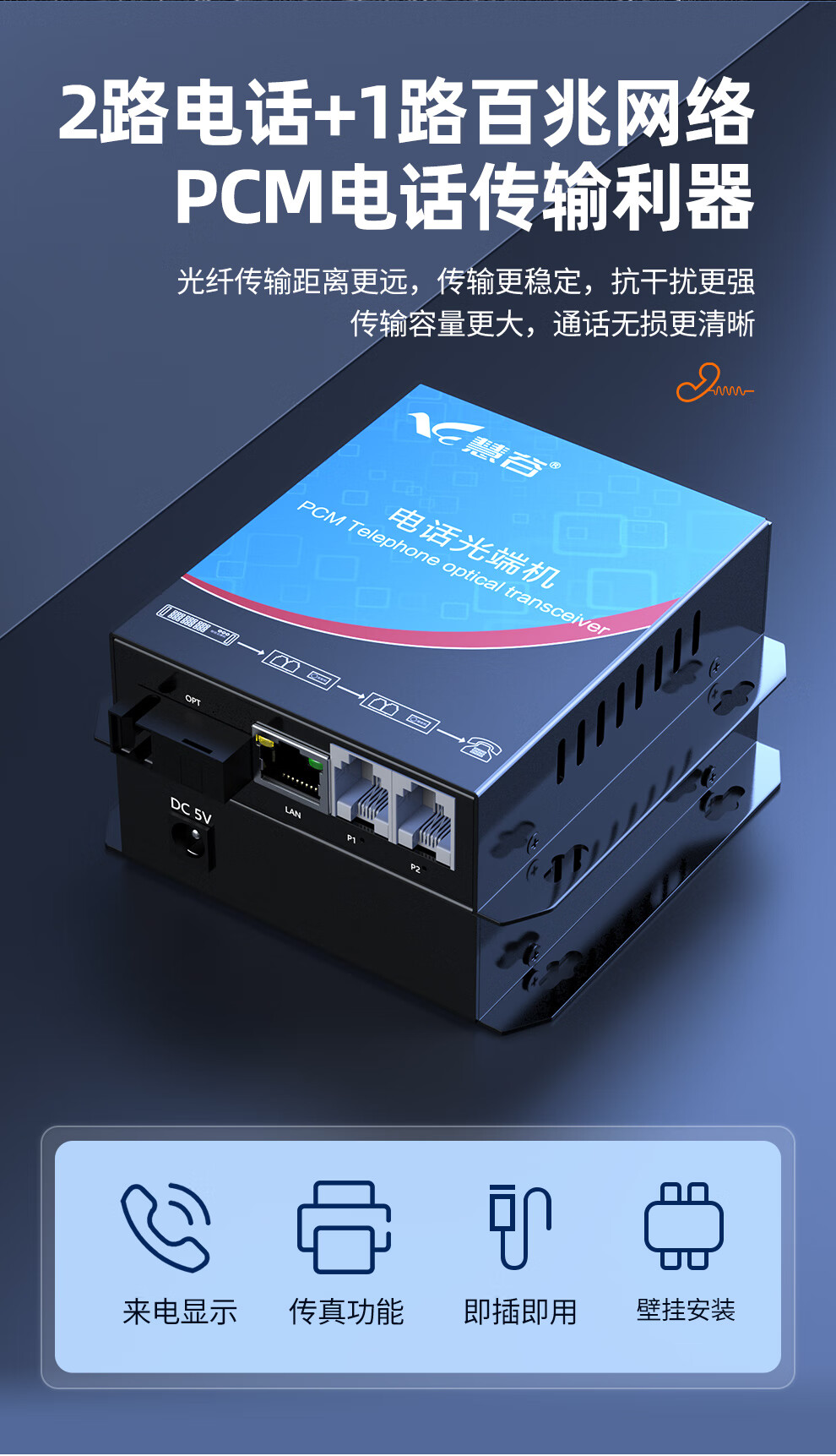 慧谷 电话光端机2路电话+1路百兆网络 PCM语音光端机 电话光纤收发器延长器 SC接口 HG-812P1E