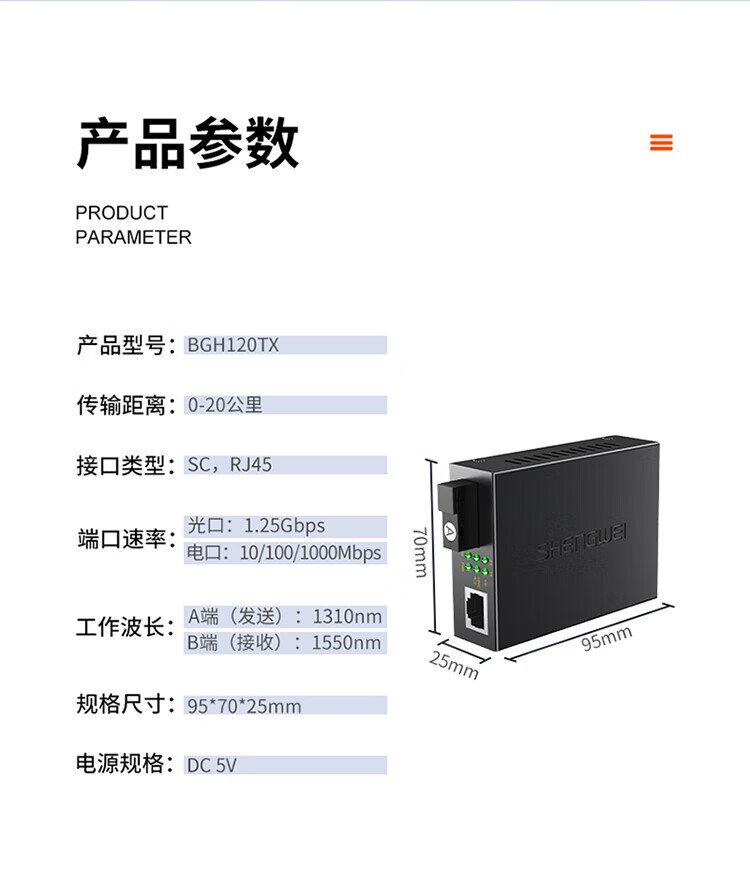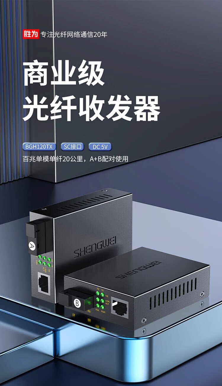 Shengwei BGH120TX fiber optic transceiver 100M single mode single fiber photoelectric converter SC interface 20KM kilometers one pair
