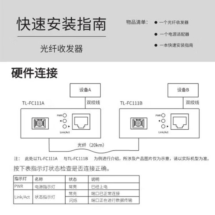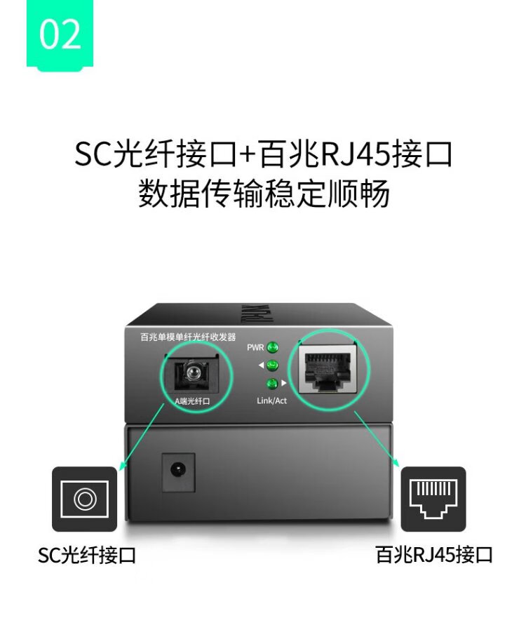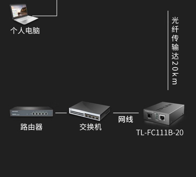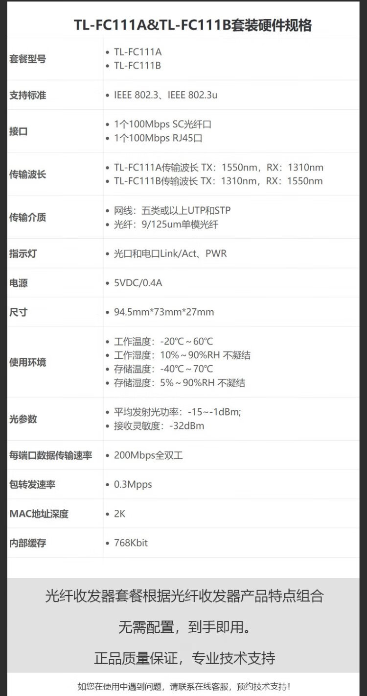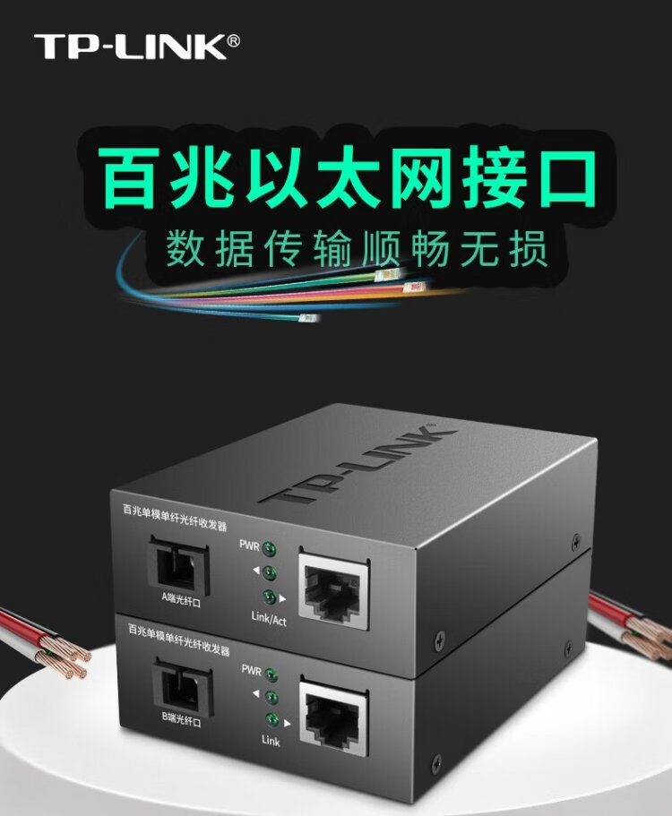TP-LINK普联百兆单模单纤光纤收发器20公里一对1光1电企业级单芯光电转换器SC口TL-FC111A+TL-FC111B套装