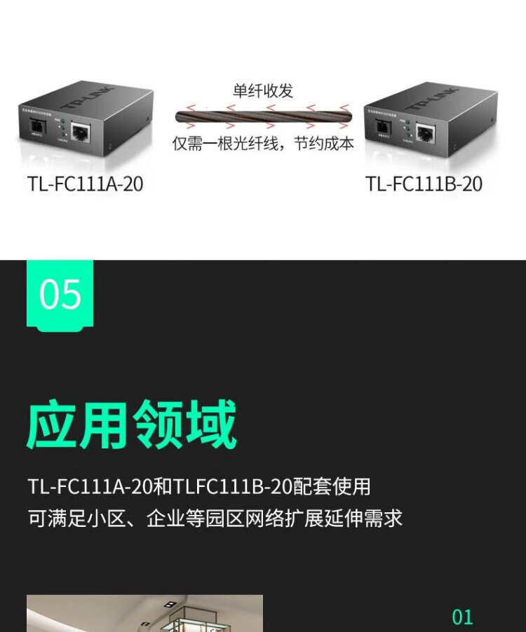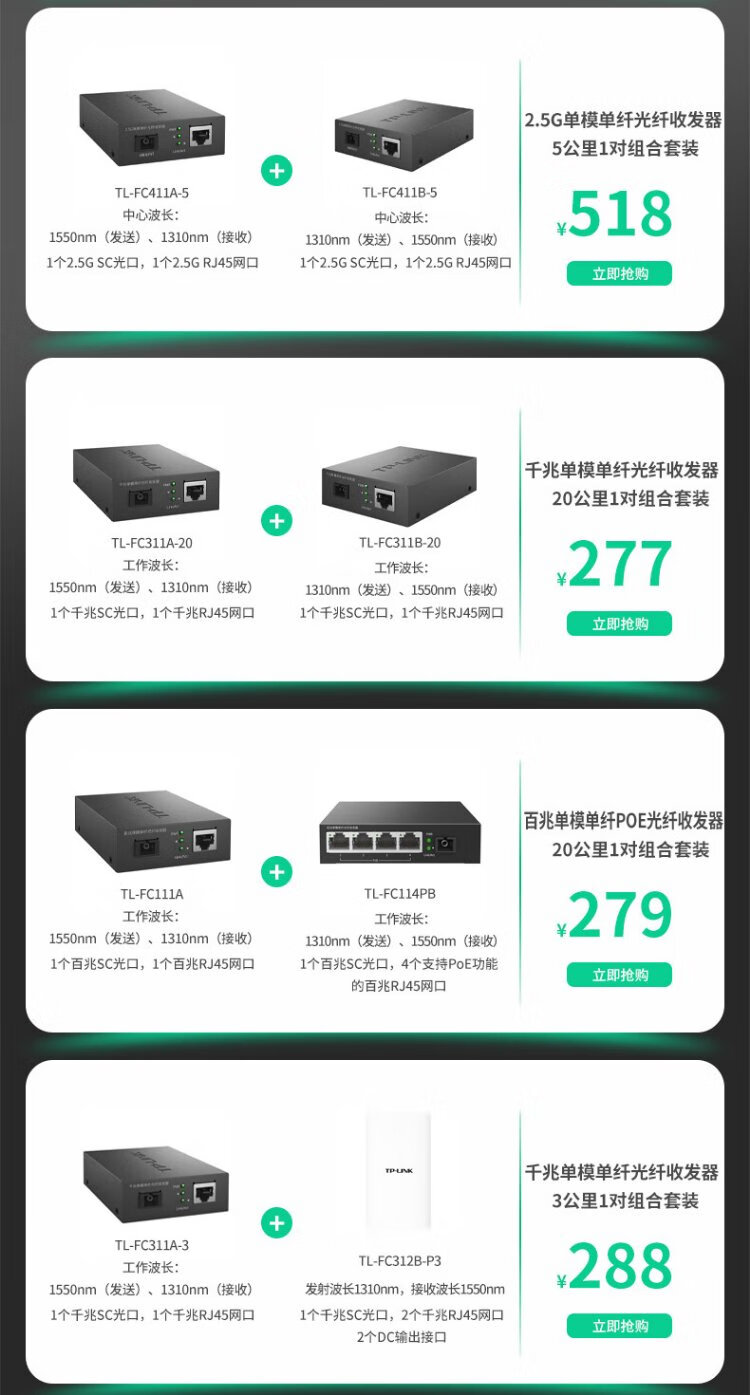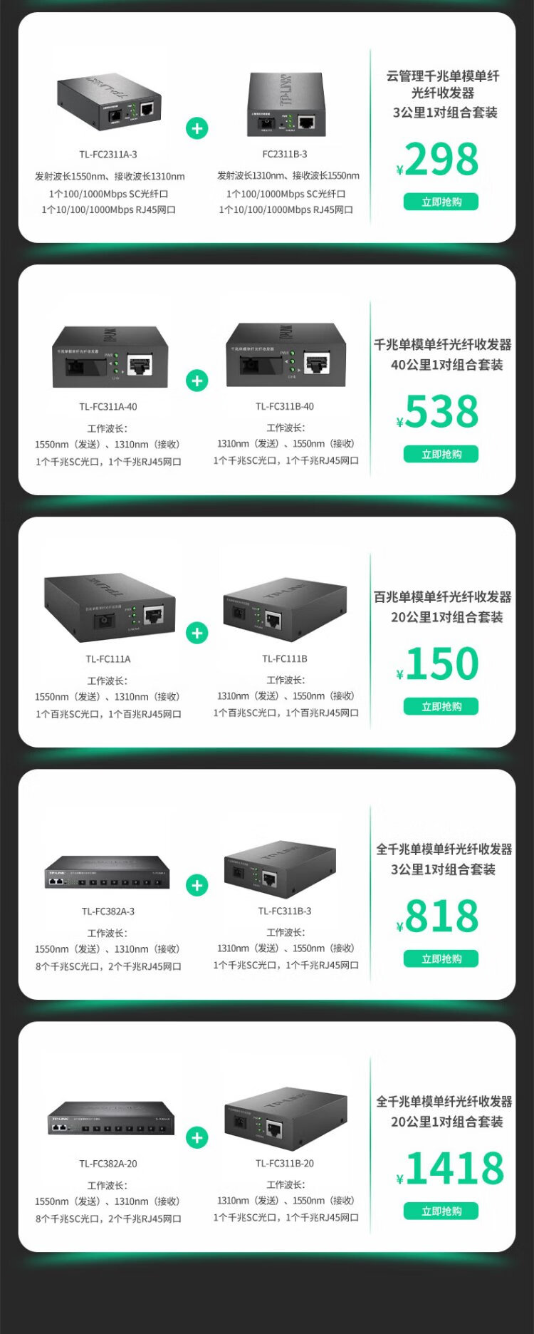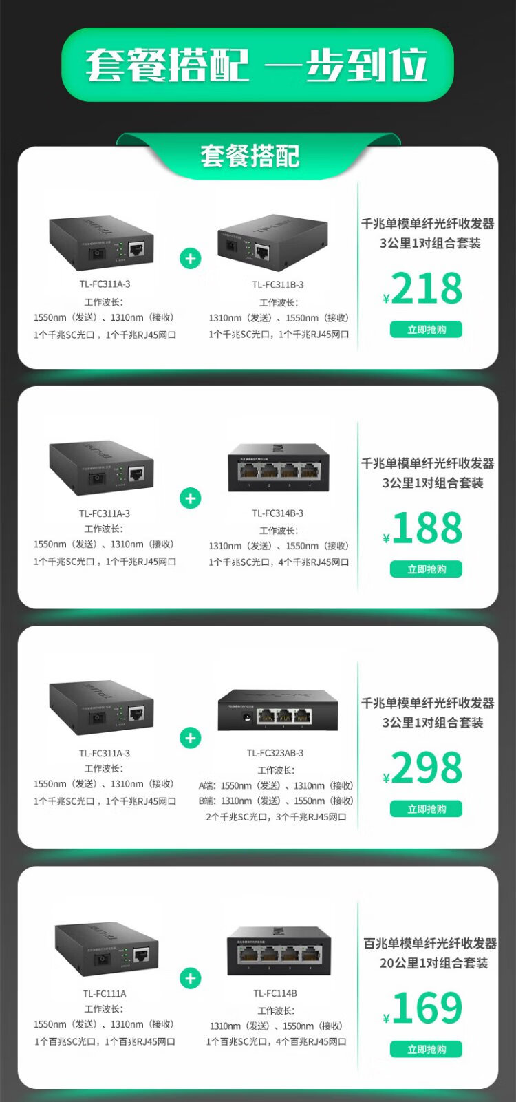 TP-LINK普联百兆单模单纤光纤收发器20公里一对1光1电企业级单芯光电转换器SC口TL-FC111A+TL-FC111B套装