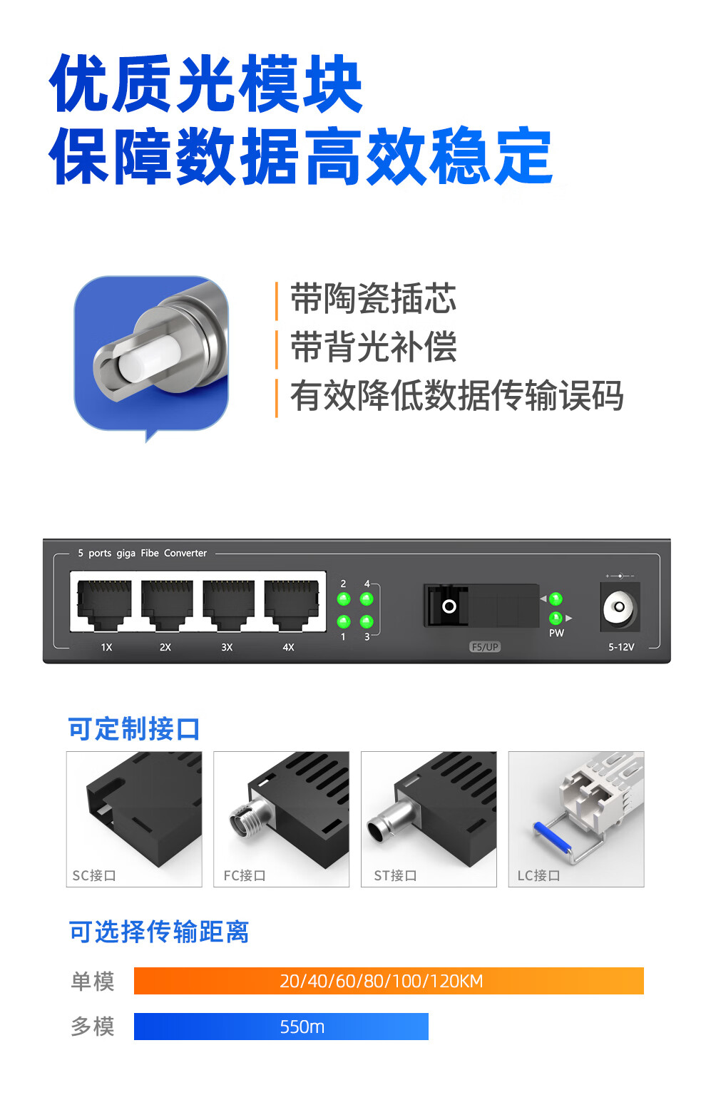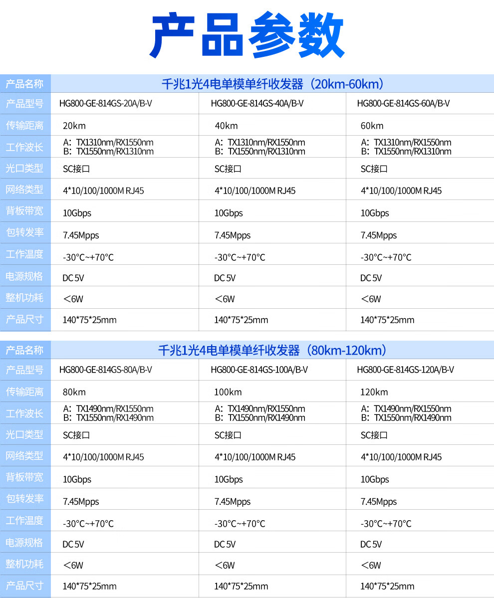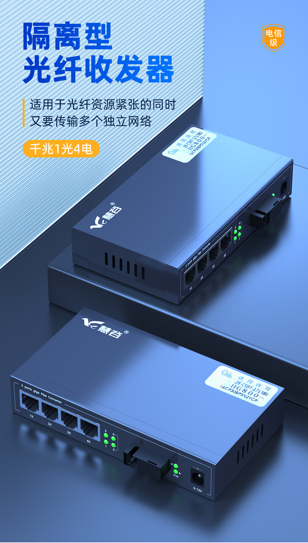 Huigu Isolated Fiber Optic Transceiver Gigabit 1 Optical 4 Electrical Single Mode Single Fiber Photoelectric Converter SC Interface 20km 1 Price HG800-GE-814GS-20A/B-V