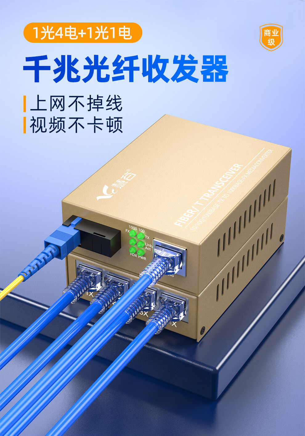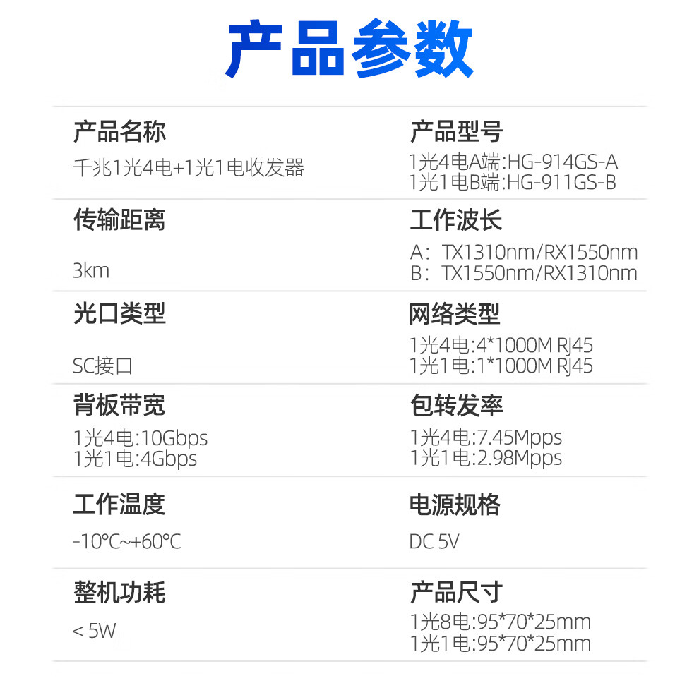 Huigu Gigabit fiber optic transceiver 1 optical 4 electrical + 1 optical 1 electrical single mode single fiber optical to electrical converter SC interface 3km commercial grade 1 price